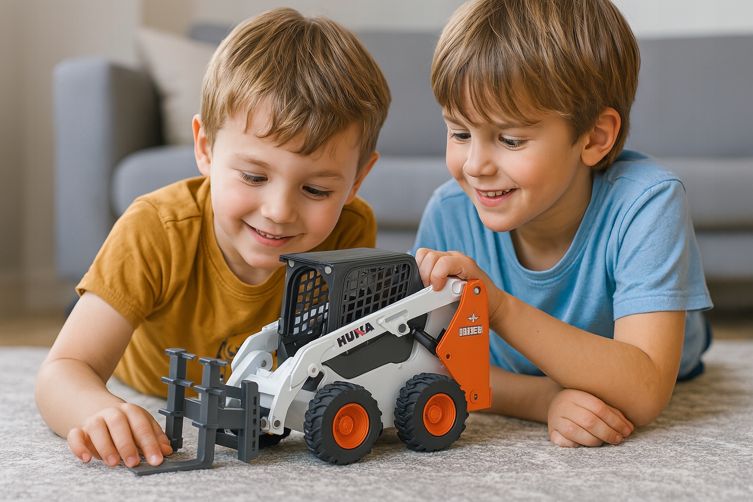 Ładowarka została wyposażona w ruchome i funkcjonalne elementy, co pozwala na symulację rzeczywistej pracy maszyny budowlanej. Dzięki temu użytkownik może tworzyć realistyczne scenariusze oraz lepiej zrozumieć działanie tego pojazdu. Gumowe koła umożliwiają płynne poruszanie się po różnych powierzchniach, co dodatkowo zwiększa realizm i atrakcyjność modelu.