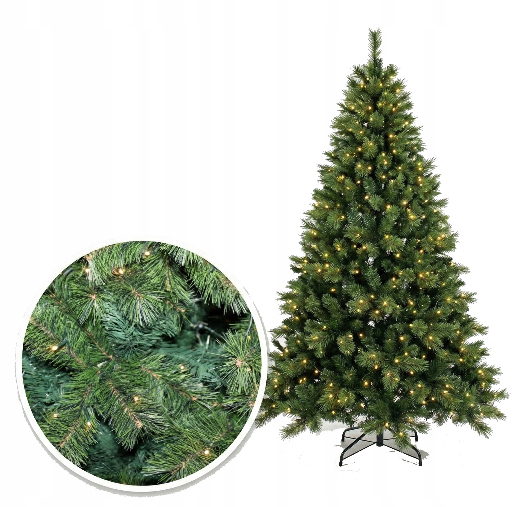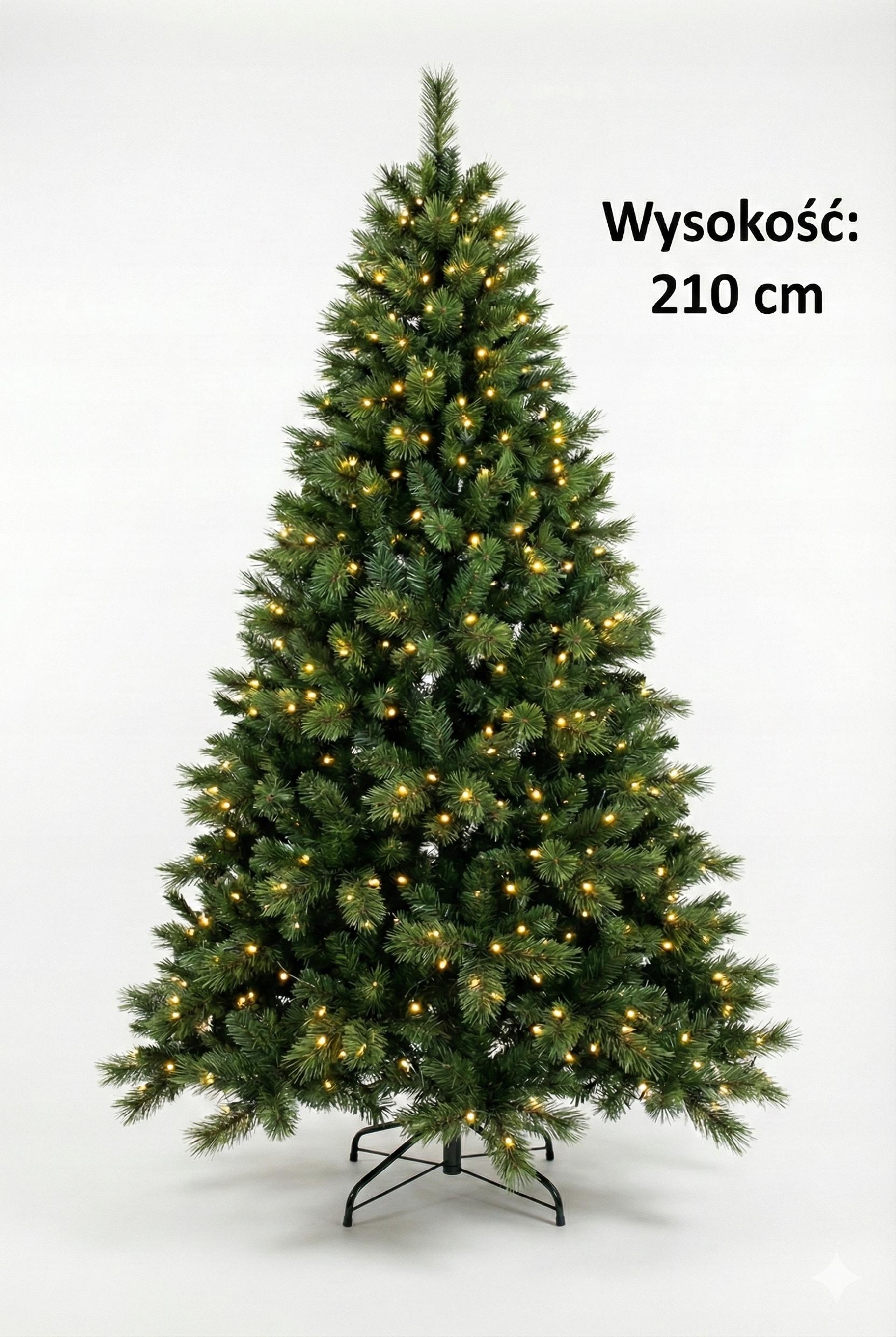 MEGA GĘSTA Choinka Sztuczna SOSNA 210cm JAK ŻYWA + Oświetlenie LED PREMIUM
