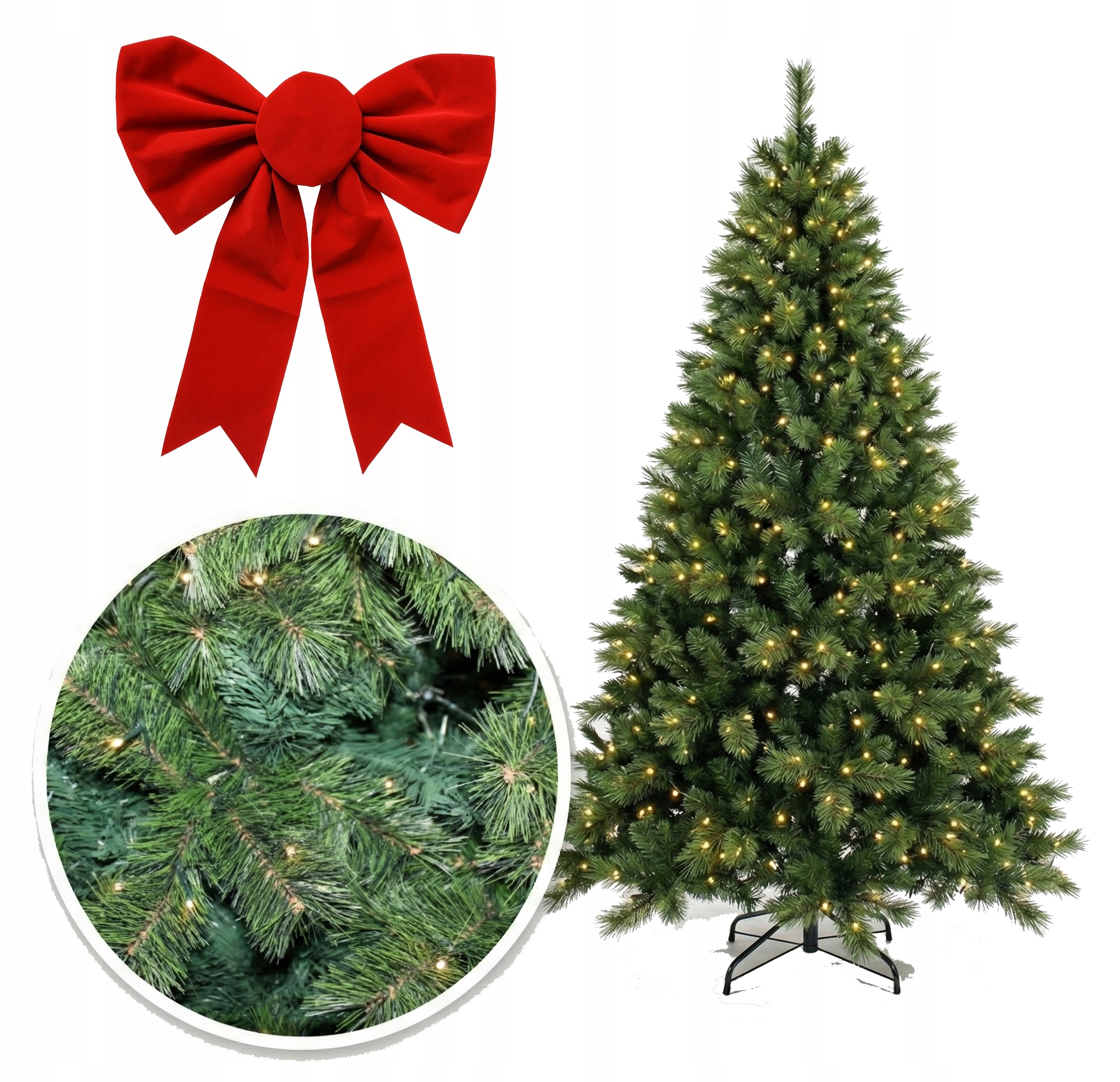 Cena oraz przedmiot tej oferty obejmują WYŁĄCZNIE choinkę z oświetleniem oraz dużą czerwoną kokardę