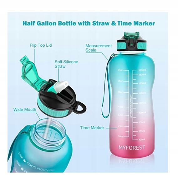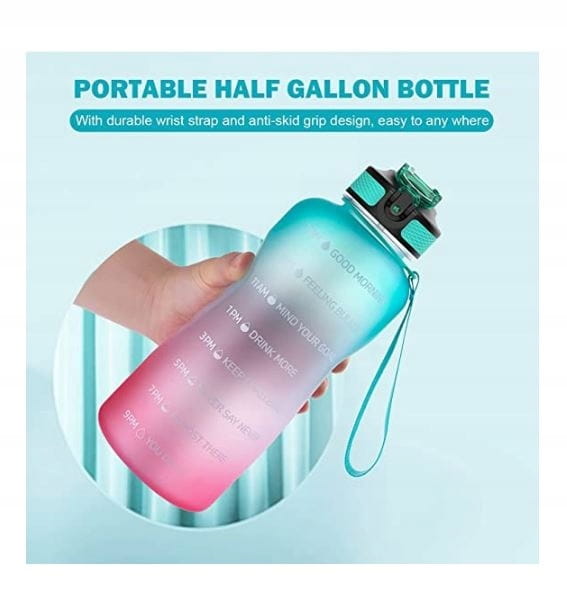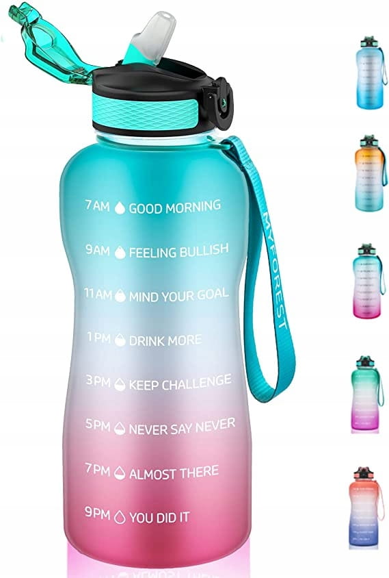 2-litrowa butelka na wodę z wyjątkowymi inspirującymi cytatami i oznaczeniami czasu przypomina o nawodnieniu i wypijaniu odpowiedniej ilości wody w ciągu dnia. Obowiązkowa butelka na wodę dla spełnienia wszystkich celów fitness, w tym utraty wagi i ogólnego zdrowia.