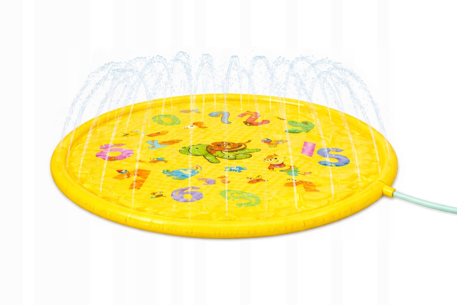 - Mata Zraszająca XXL (170 cm) – Wykonana z grubego, wytrzymałego tworzywa z kolorowym motywem morskich zwierzątek i cyferek.
