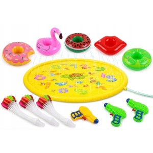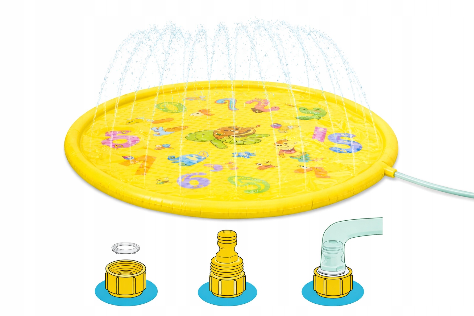 - Mata Zraszająca XXL (170 cm) – Wykonana z grubego, wytrzymałego tworzywa z kolorowym motywem morskich zwierzątek i cyferek.