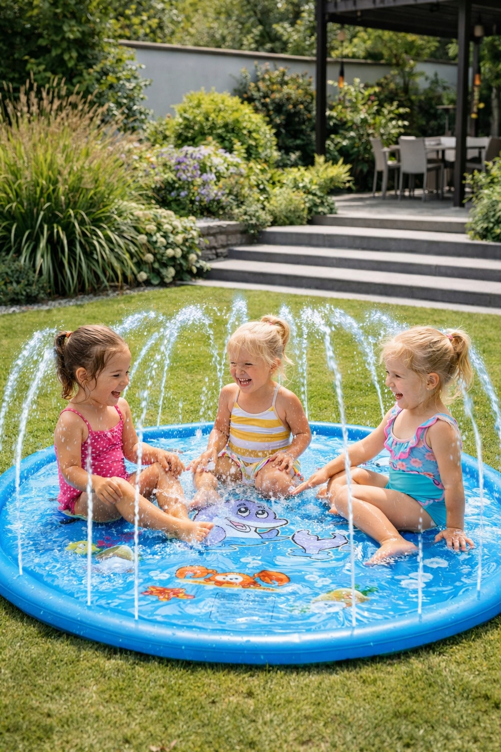 Zapewnij dzieciom niezapomnianą frajdę w upalne dni! Mata wodna o średnicy 170 cm zamienia zwykły ogród w wodny plac zabaw
