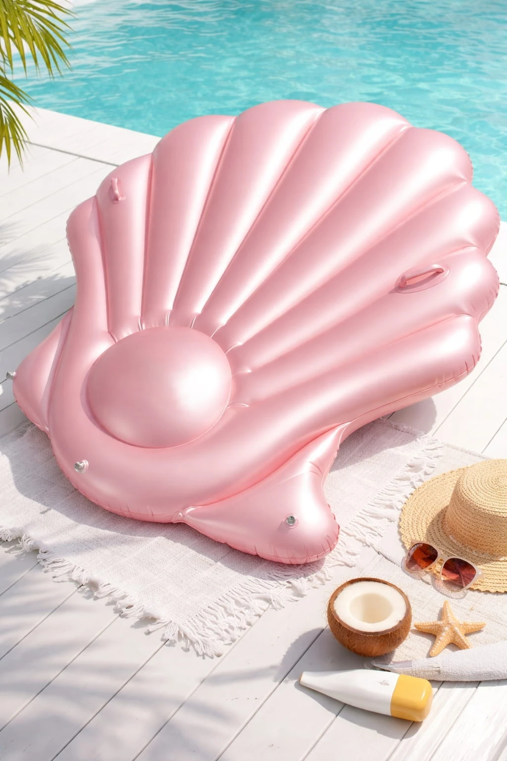 Stylowy i wyjątkowy materac dmuchany w kształcie muszli to absolutny hit na lato! Idealny do basenu, ogrodu lub nad jezioro. Jego elegancki, perłowo-różowy kolor przyciąga uwagę i świetnie prezentuje się na zdjęciach ?