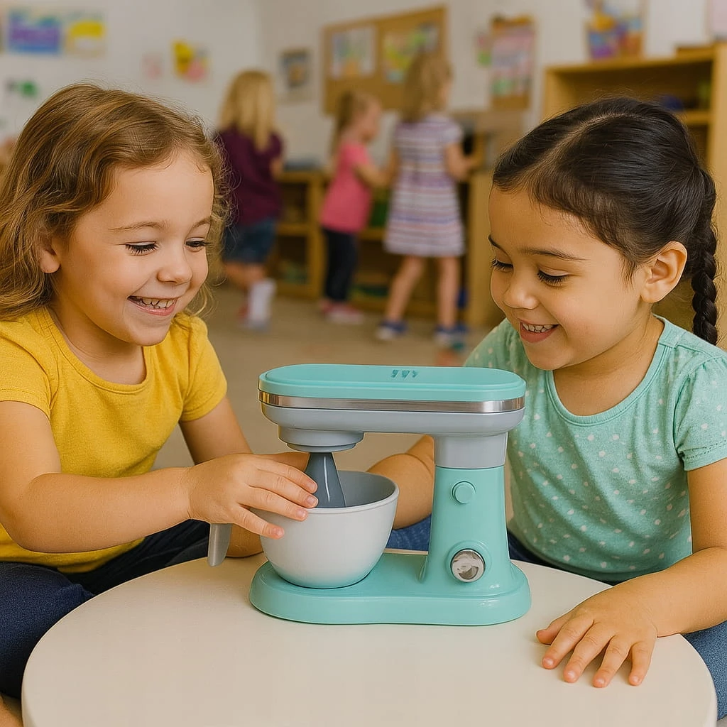 Zabawa mikserem nie tylko dostarcza mnóstwo radości, ale także rozwija koordynację wzrokowo-ruchową, wyobraźnię oraz umiejętności społeczne podczas zabawy z innymi. To świetny sposób na zachęcenie dzieci do kreatywnej zabawy i odkrywania świata gotowania.