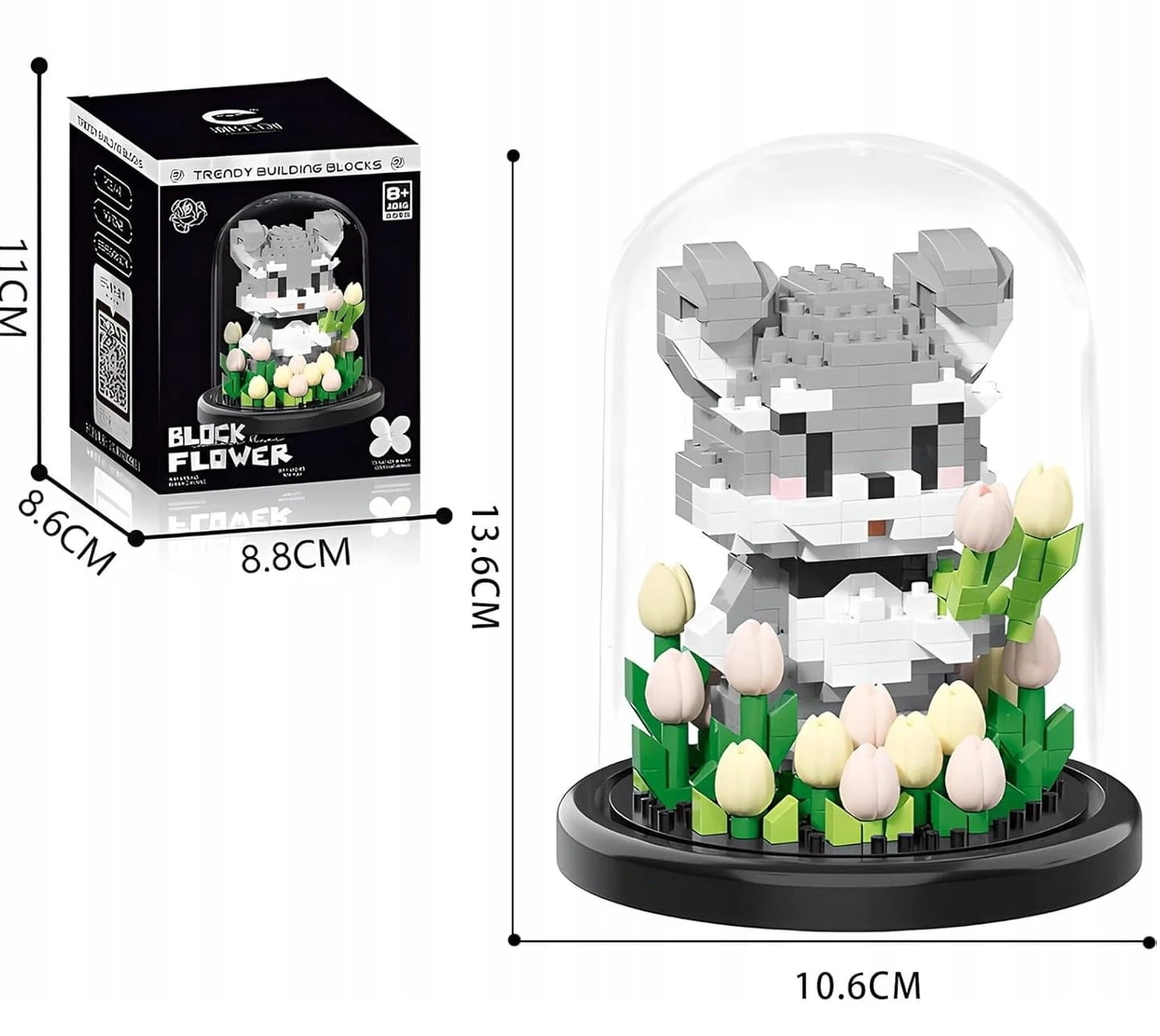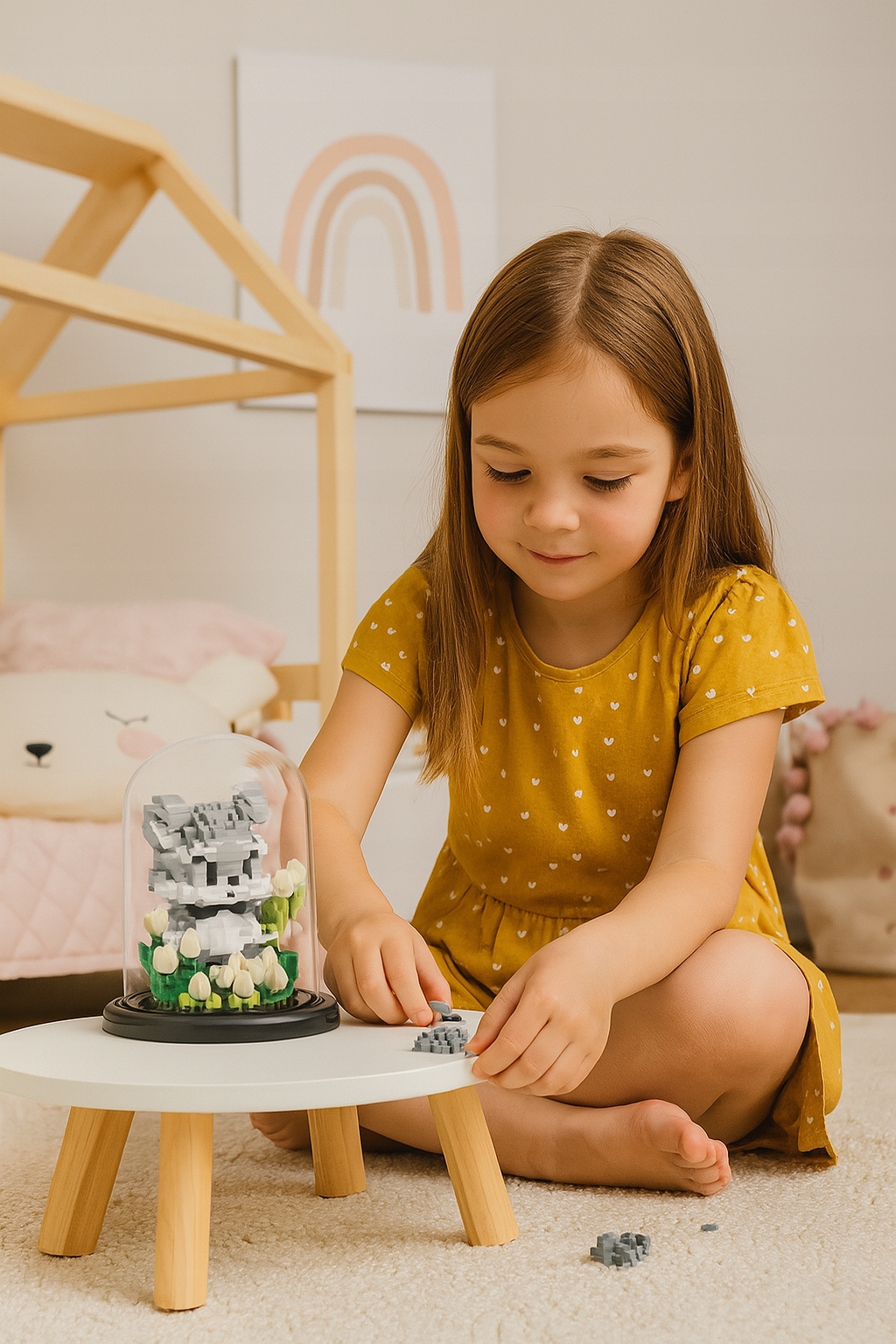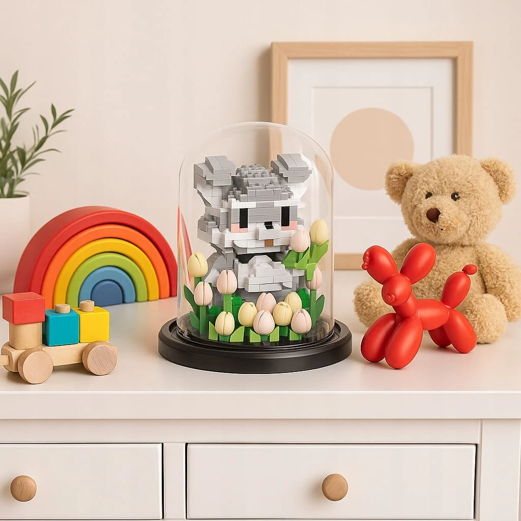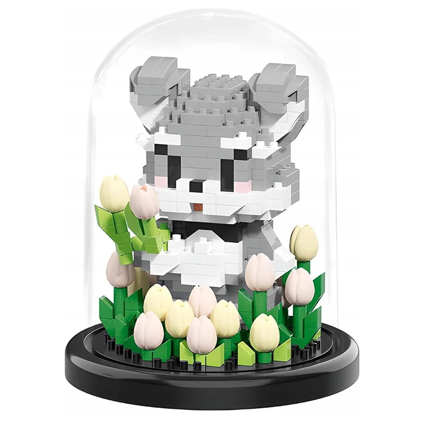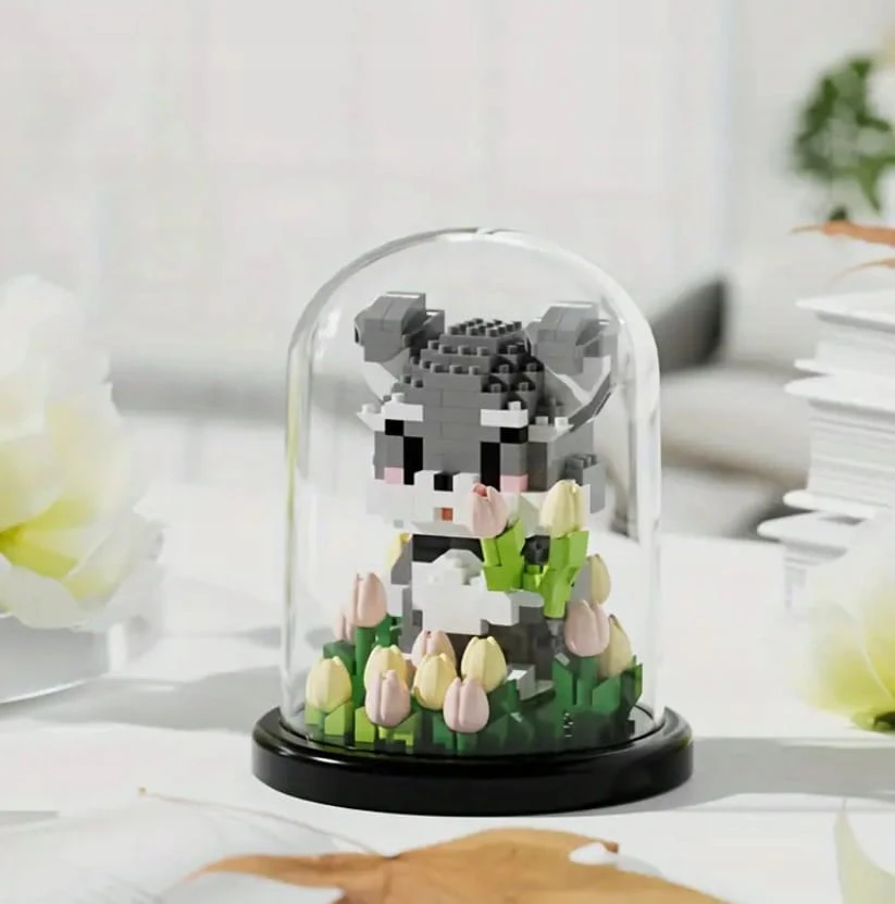 ⭐ Miś w kloszu z mini klocków 446 elementów 13cm Ozdoba na biurko Model 3D ⭐