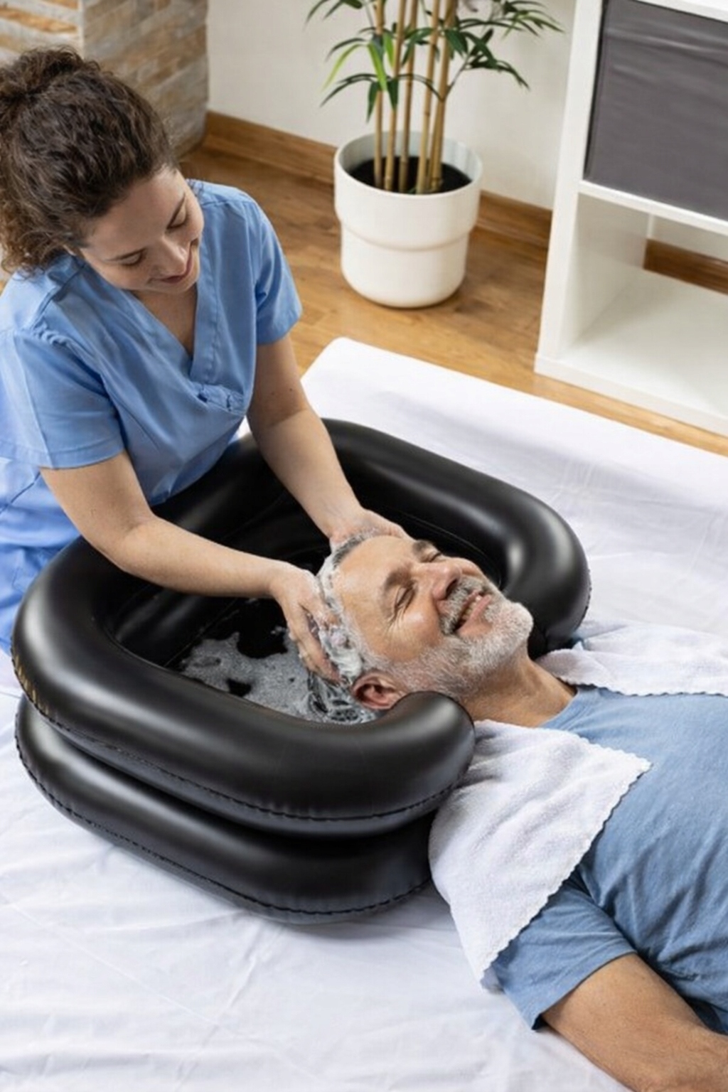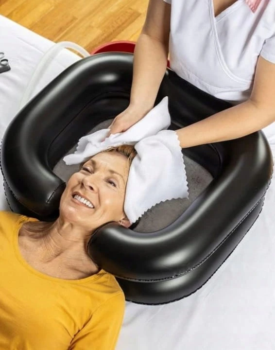 Szukasz wygodnego sposobu na mycie włosów osobie leżącej? Nasza nadmuchiwana miska do mycia głowy to idealne rozwiązanie do domu, szpitala, salonu opieki czy gabinetu kosmetycznego.