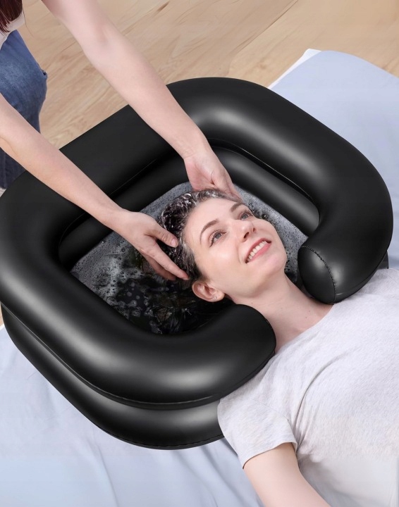 Nadmuchiwana umywalka do mycia włosów rozwiązuje trudności związane z myciem włosów przenośnym szamponem, mycie włosów na łóżku jest łatwe i wygodne.