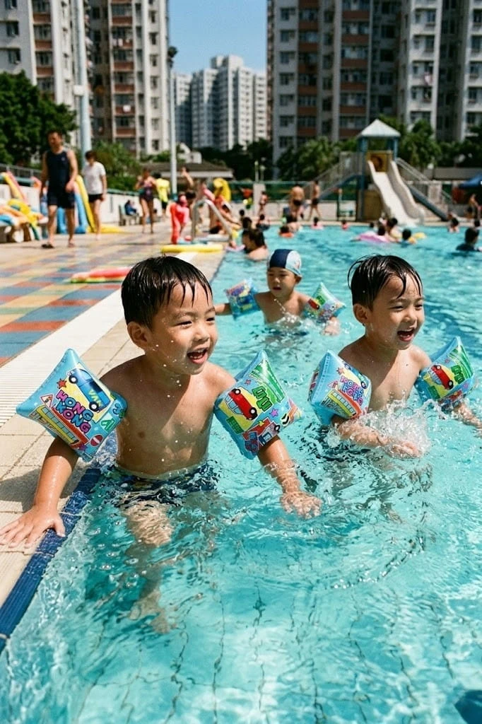 Kolorowe, nadmuchiwane rękawki do nauki pływania dla dzieci.