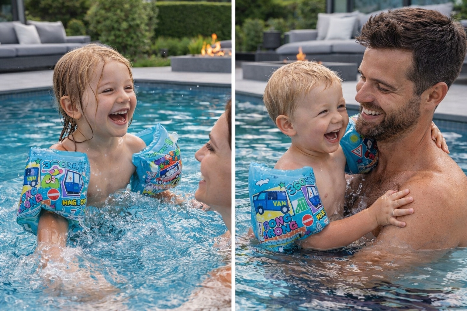 Wesoły motyw z pojazdami zachęca maluchy do zabawy w wodzie i pomaga oswoić się z pływaniem.
