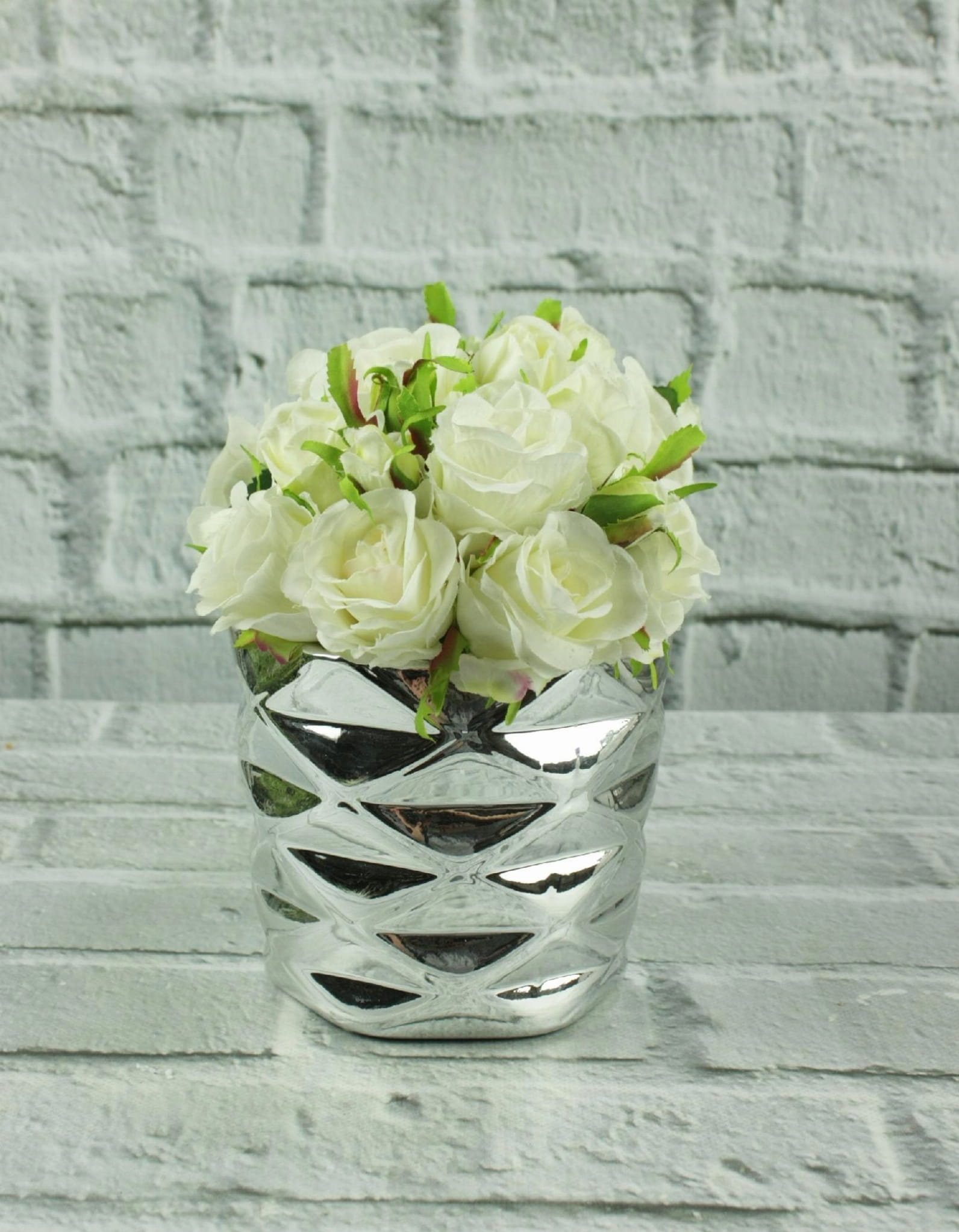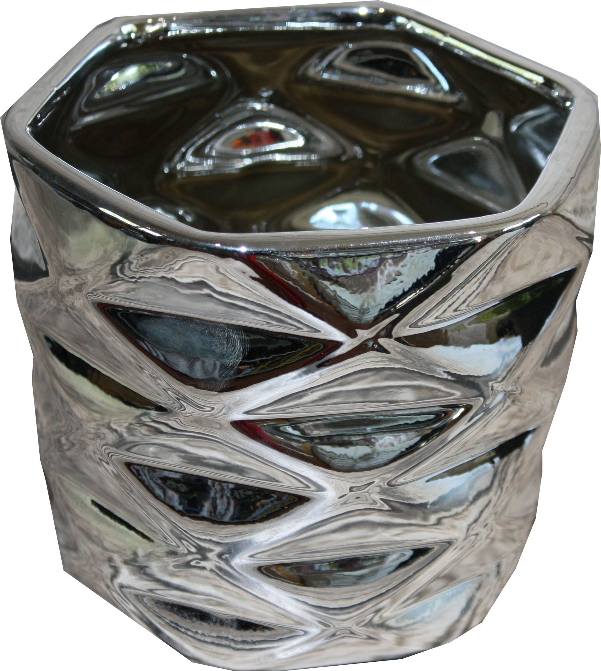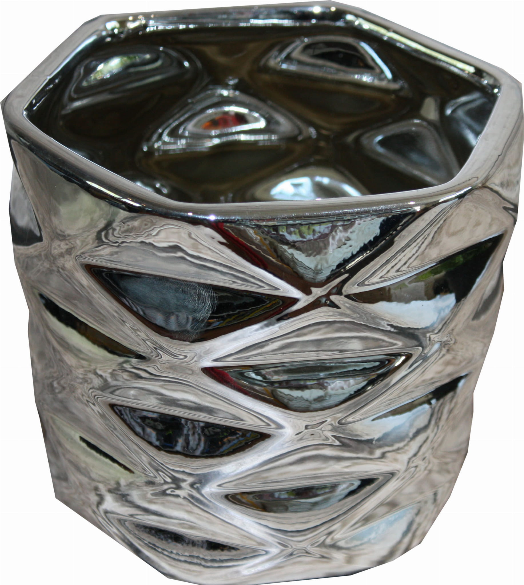 Doniczka – osłonka z ceramiki w kolorze srebrnym -sześciokąt.