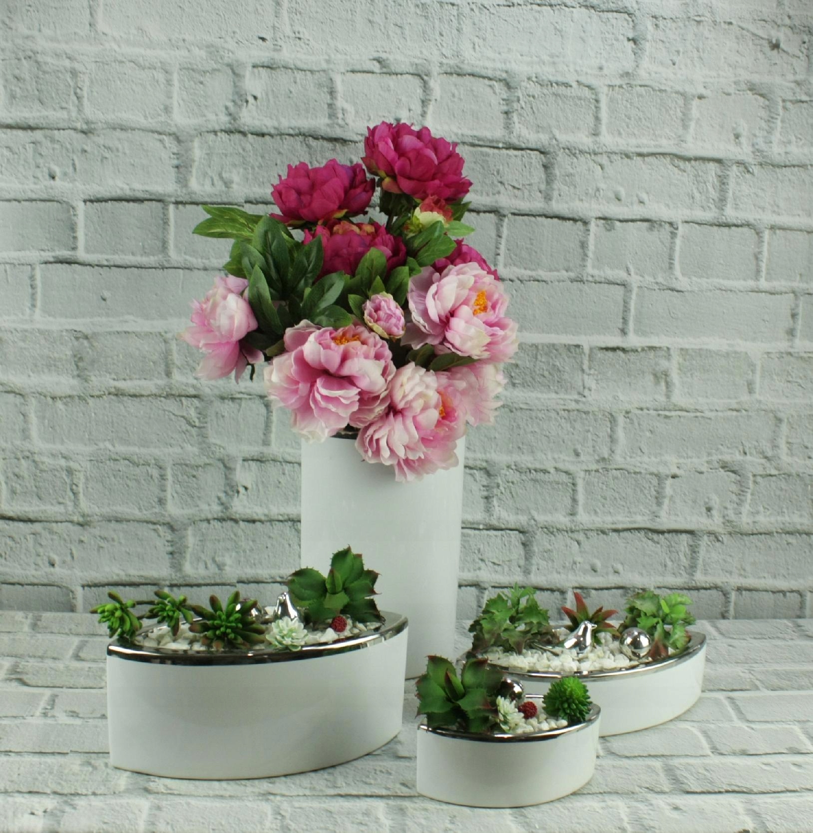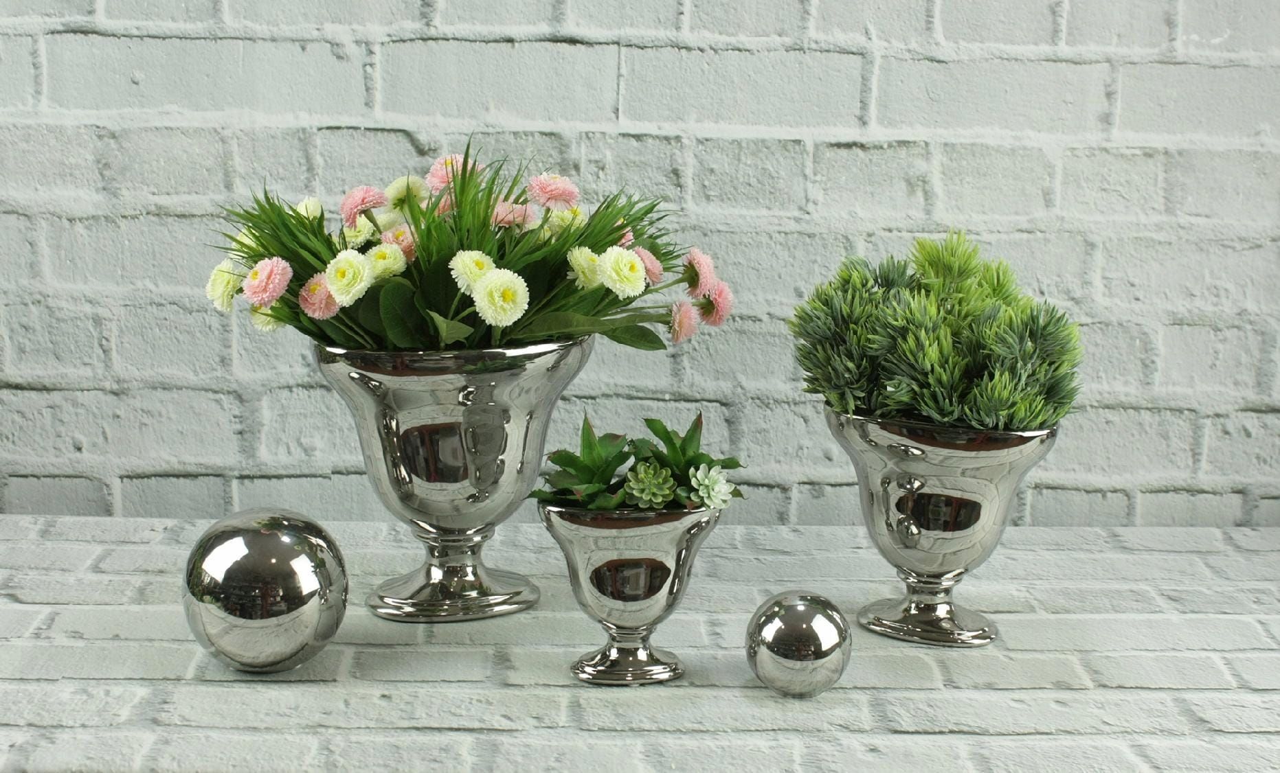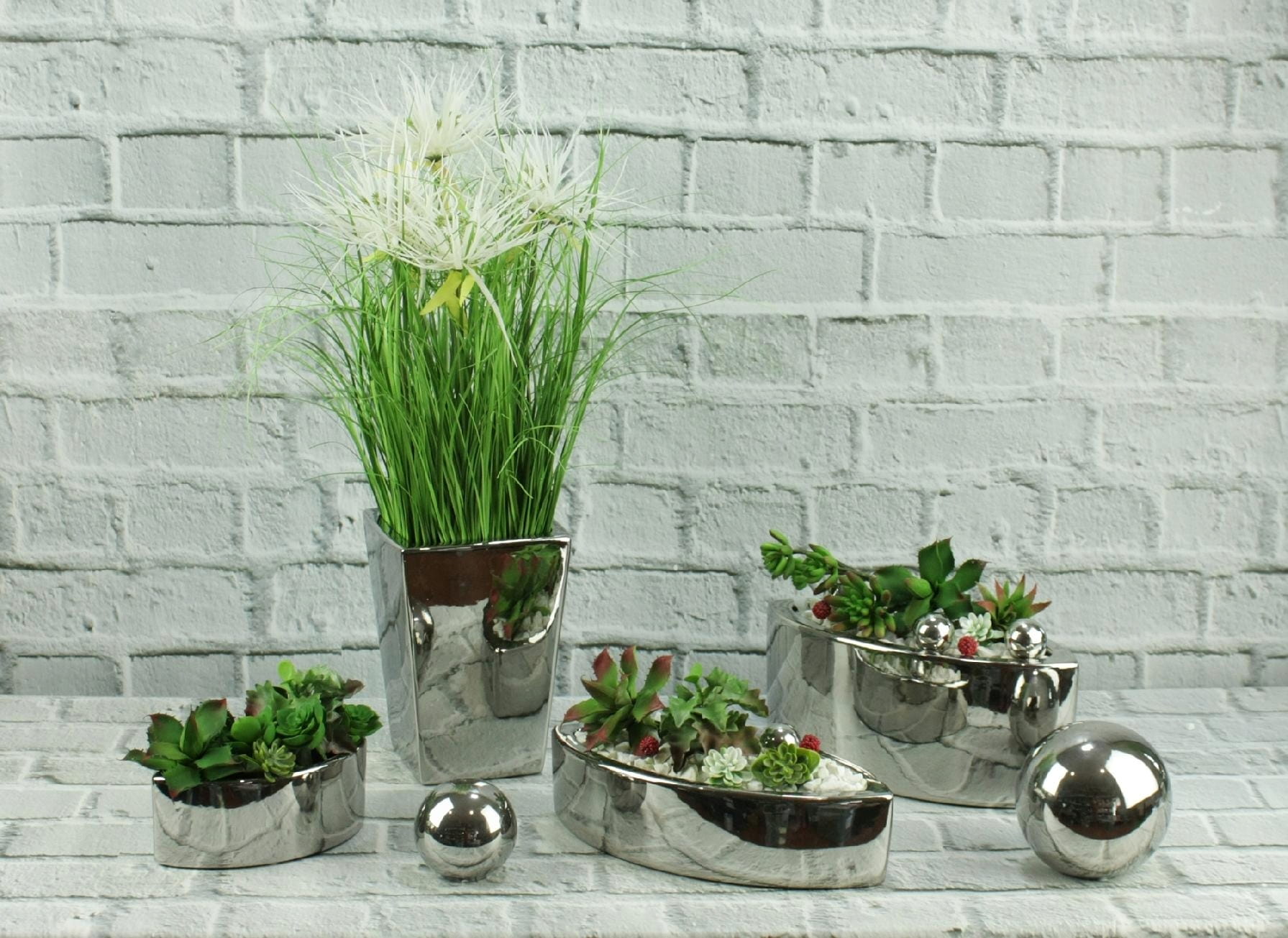 Kolor chłodnego srebra w połączeniu z niebanalnym kształtem tworzy nowoczesną, a jednocześnie ponadczasową kompozycję, dzięki czemu nasza donica dopasuje się do wielu wnętrz i uzupełni różne stylizacje.