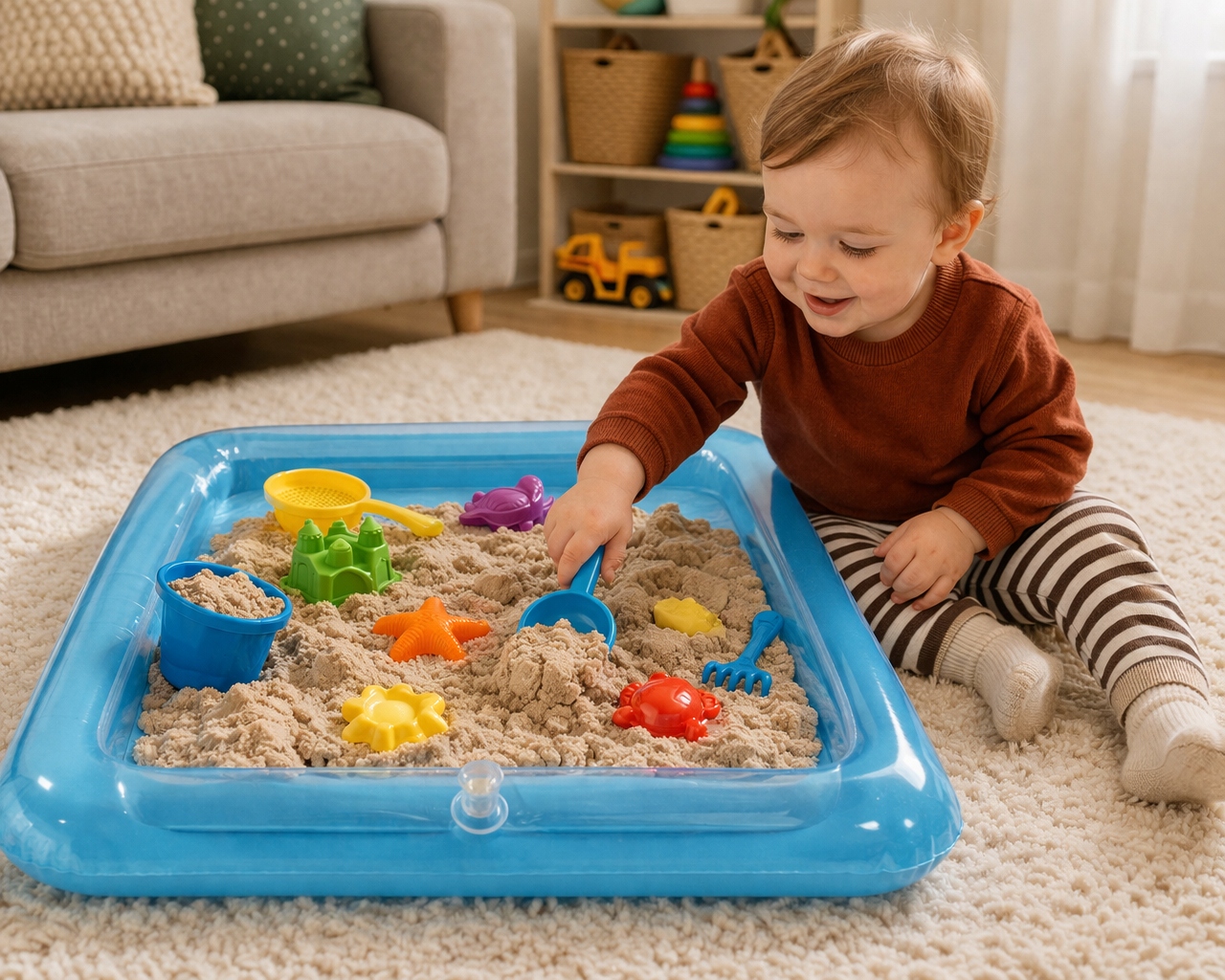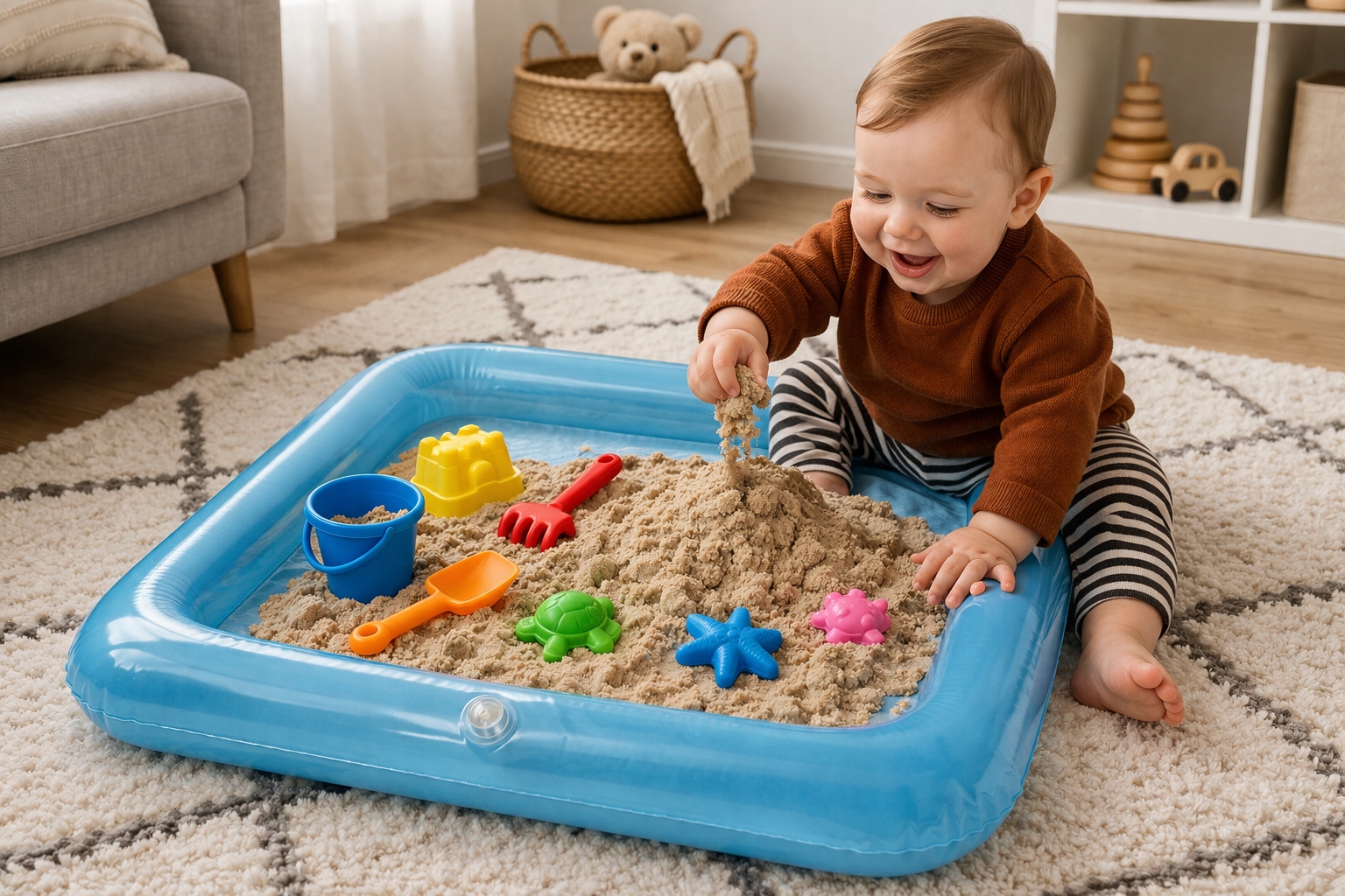 ✨ Po zakończeniu zabawy wystarczy spuścić powietrze i piaskownica zajmie niewiele miejsca. To wygodne i praktyczne rozwiązanie.