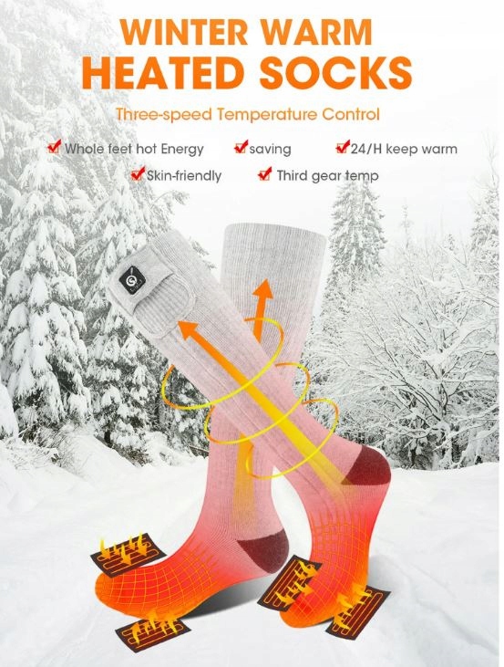 Elektryczne skarpetki zawierają parę akumulatorów litowo-polimerowych 7,4 V 2200 MAH. Nagrzewanie do 2,5-6 godzin, pełne naładowanie akumulatora około 3-4 godzin. Ponadto jest wyposażony w 3-stopniowy regulator temperatury, dzięki czemu można łatwo regulować temperaturę