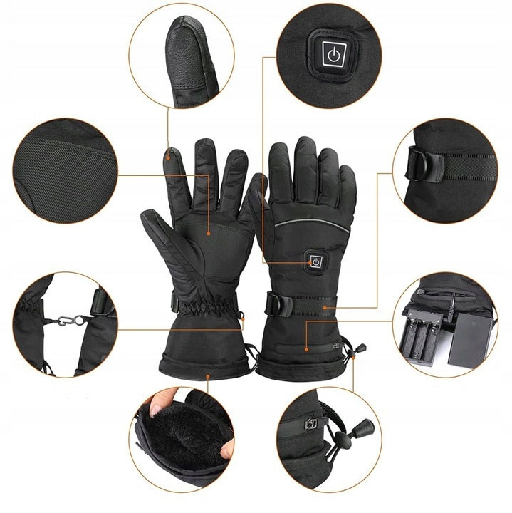 Podgrzewane rękawice na baterie z warstwą termoizolacyjną i wodoodporną.
