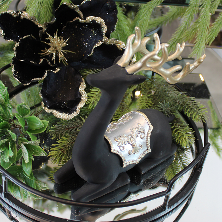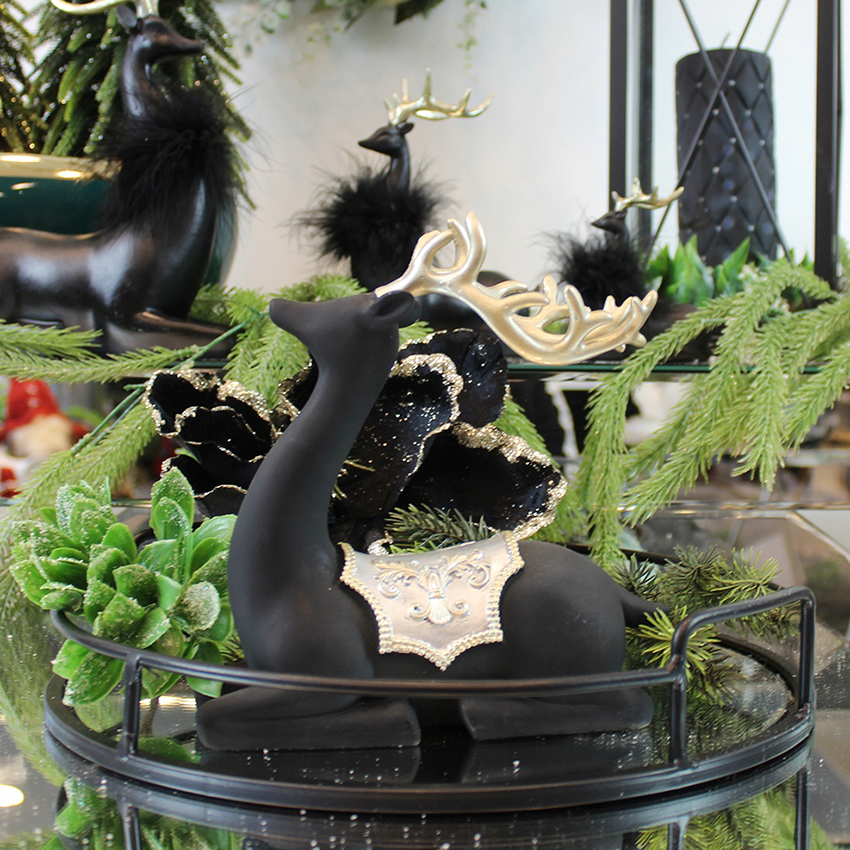 Renifer czarny ze złotym zdobieniem