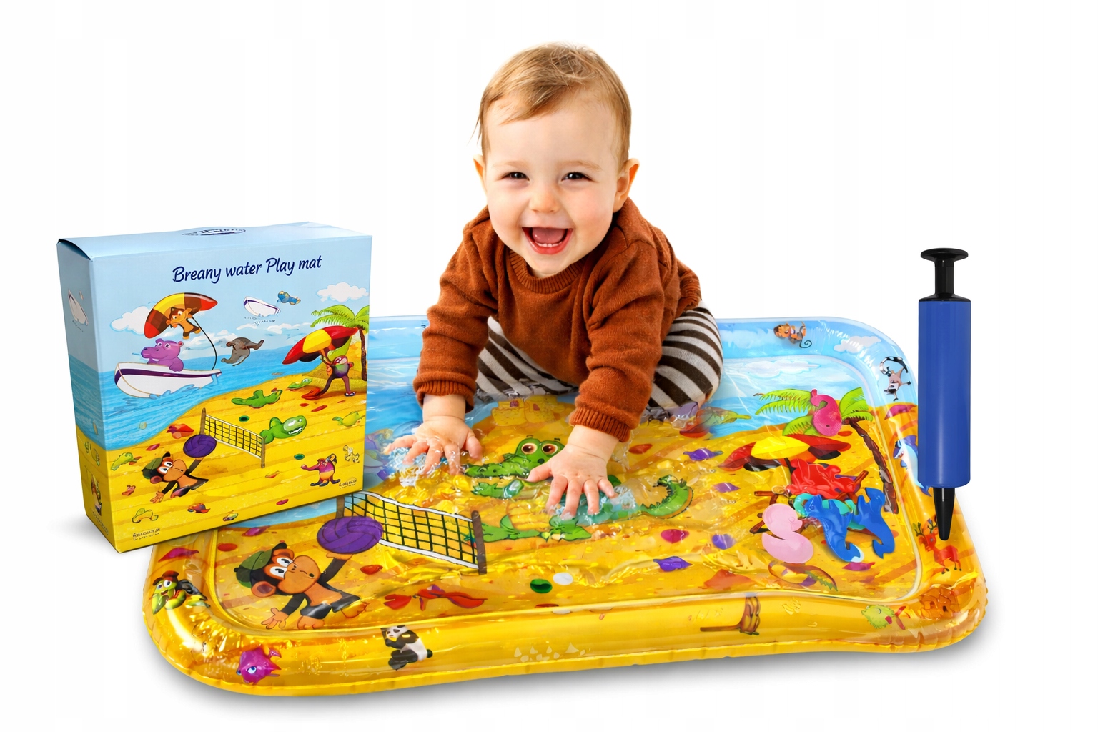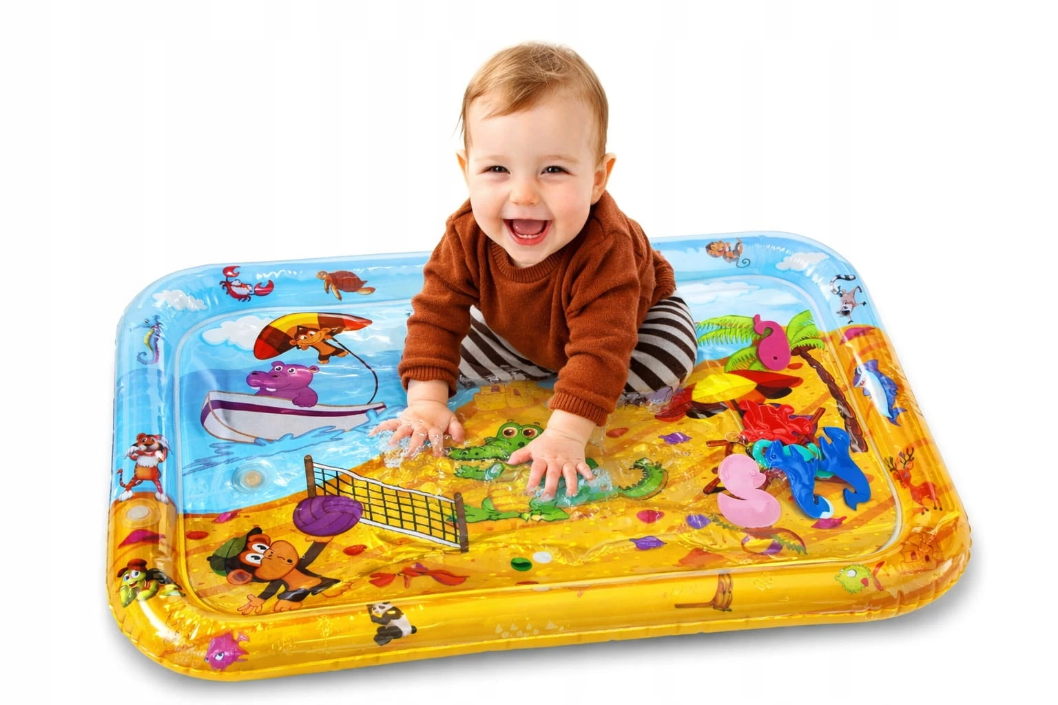Sensoryczna dmuchana mata wodna dla dziecka 60 x 40 cm plaża zwierzęta