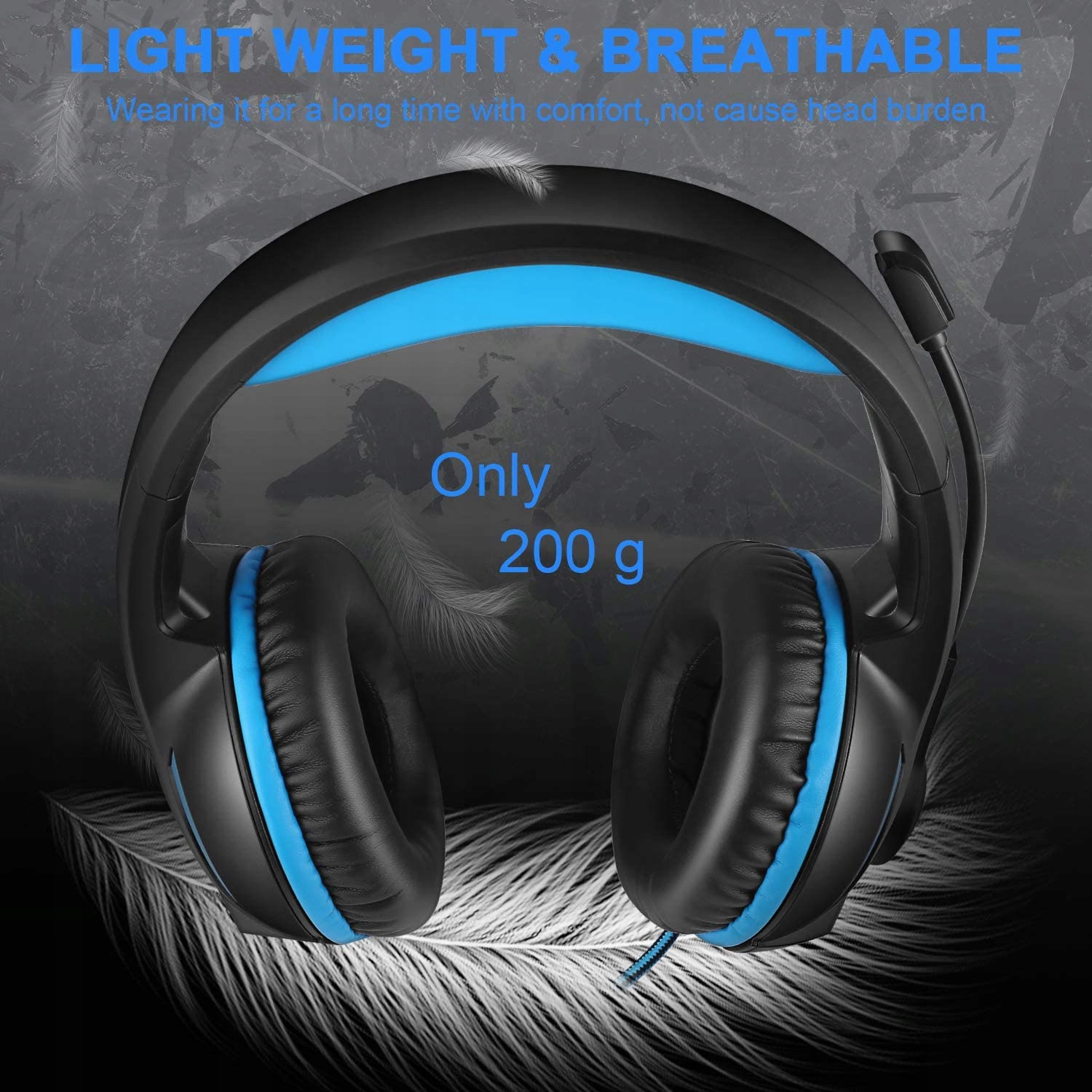 Regulacja głośności basów stereo, zestaw słuchawkowy do gier do przełącznika, Xbox One, PS4, PC, laptop, tablet (niebieski)