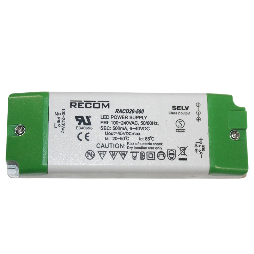 Sterownik LED Driver 20W 500mA 6-40V IP20 Recom RACD20-500