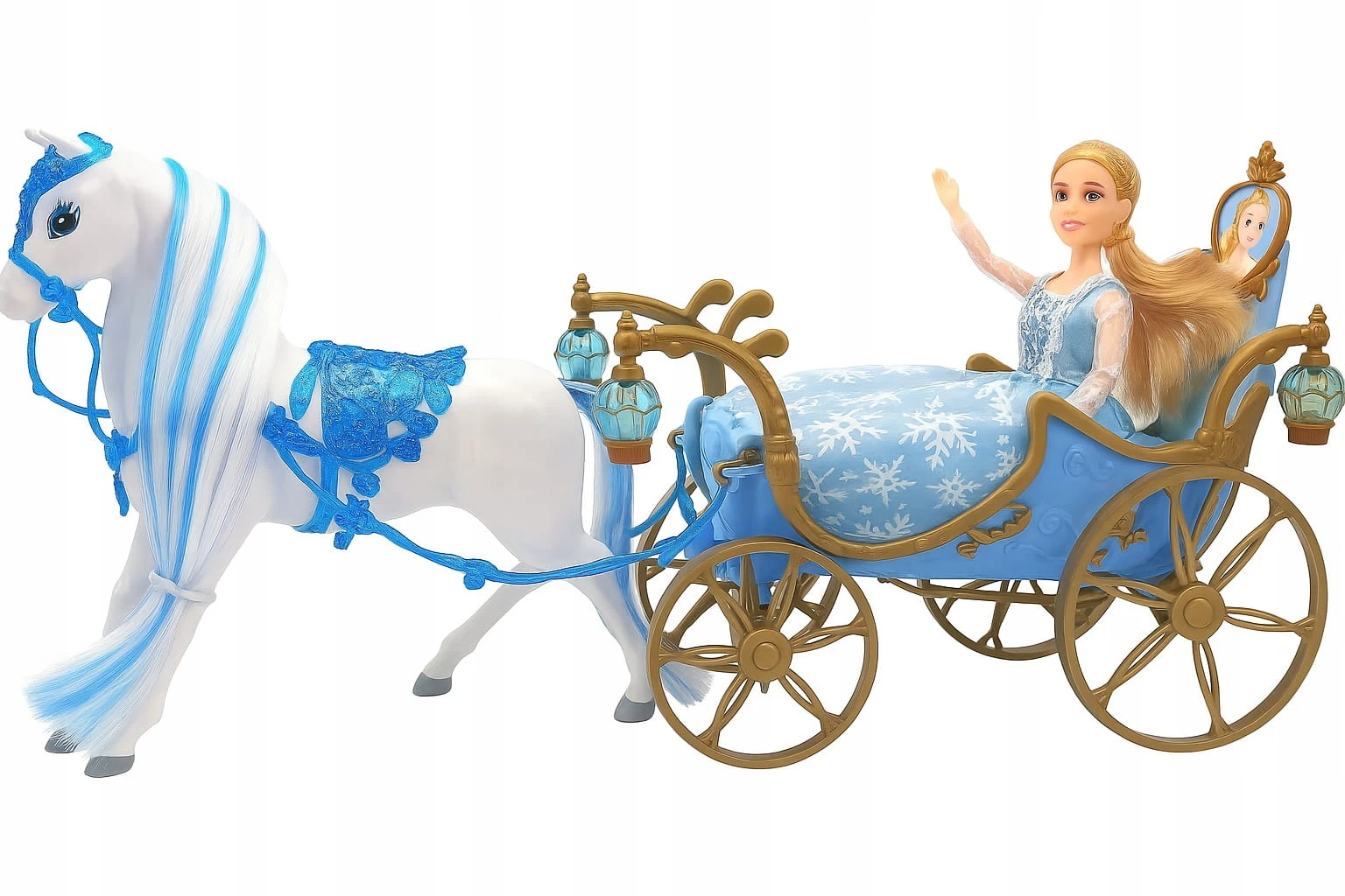 ⭐ Świecąca KAROCA Lalka Koń XXL Lodowa Księżniczka Kareta 52cm Pojazd ⭐