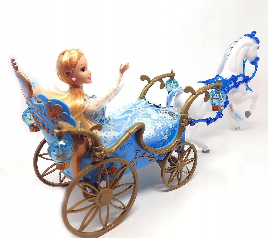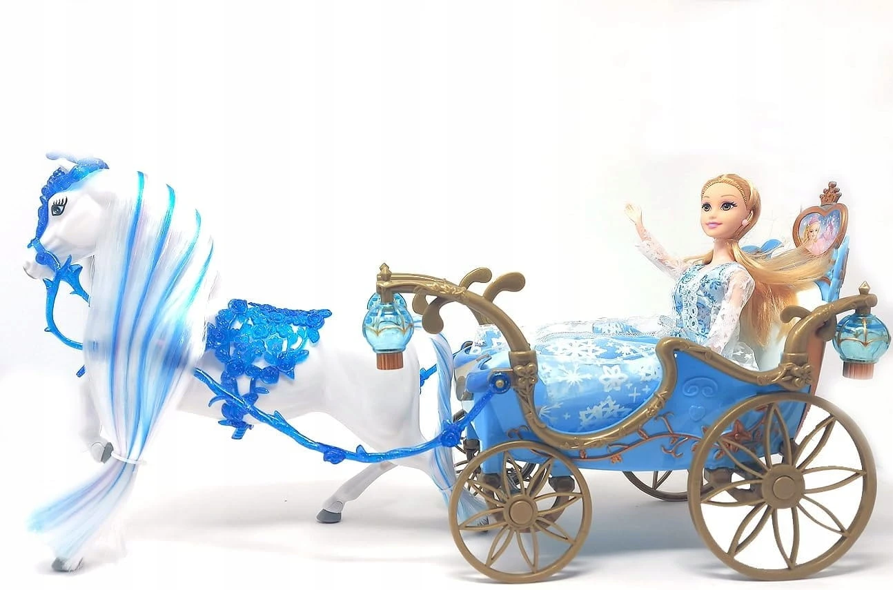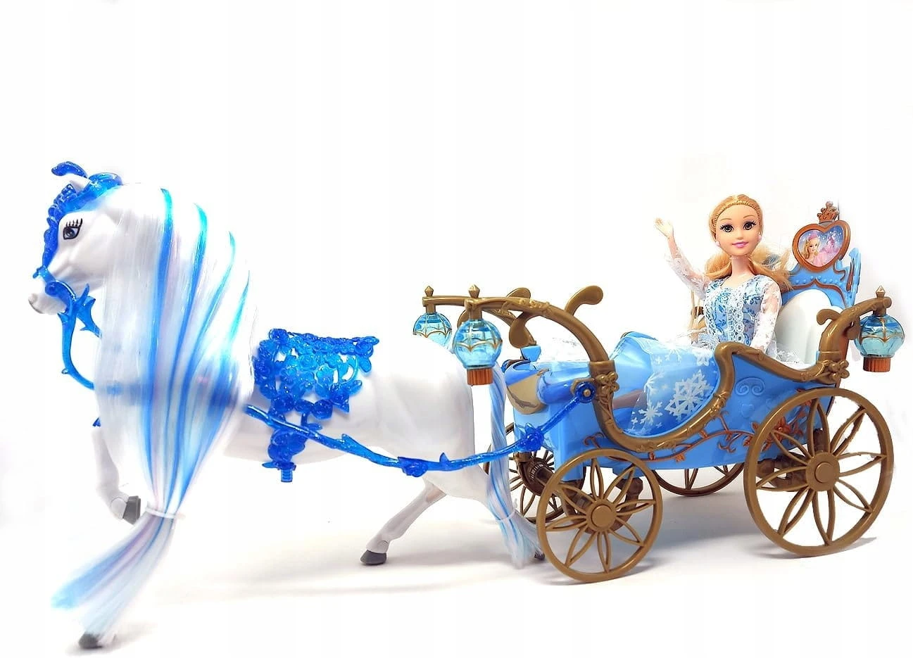 Świecąca KAROCA Lalka Koń XXL Lodowa Księżniczka Kareta 52cm Pojazd