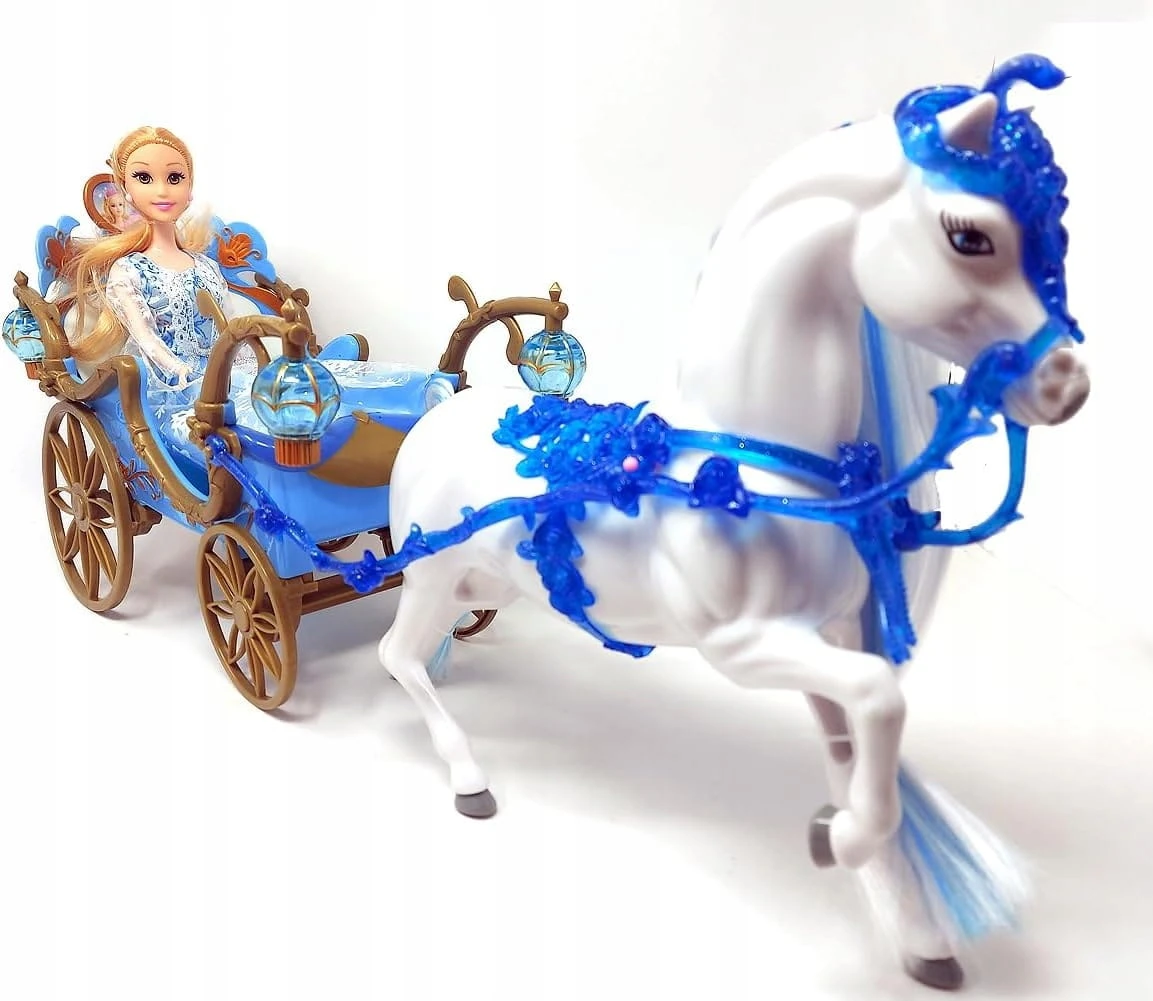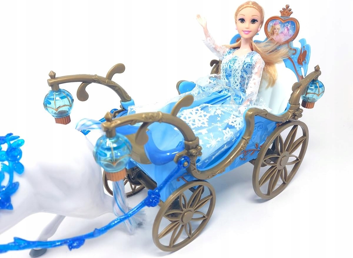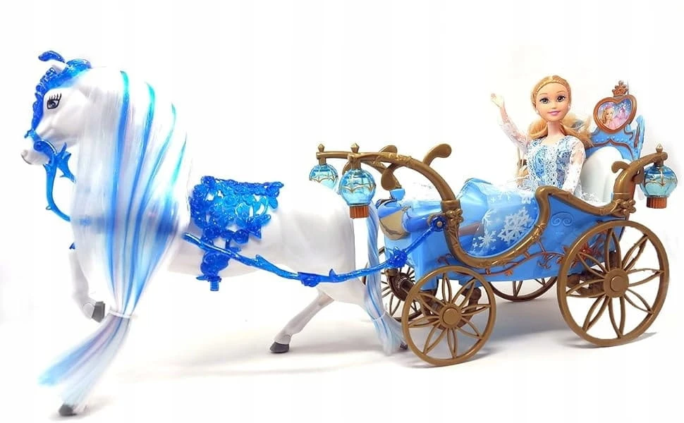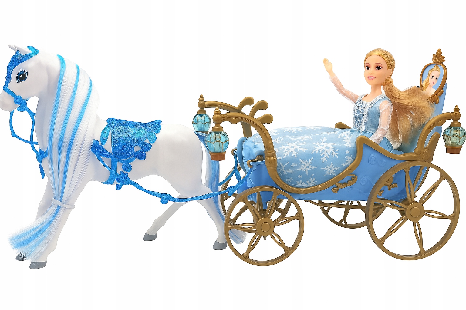 Świecąca KAROCA Lalka Koń XXL Lodowa Księżniczka Kareta 52cm Pojazd
