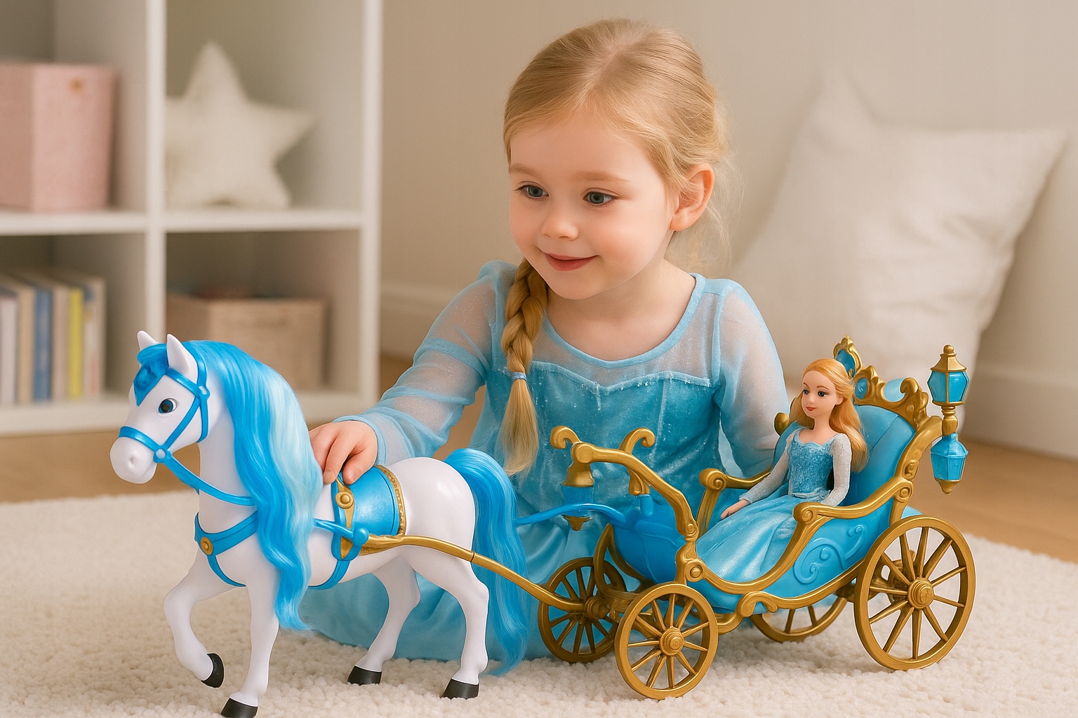 Zabierz swoją małą księżniczkę w magiczną podróż do świata pełnego zamków, czarów i niezwykłych przygód dzięki uroczej, błękitnej karecie!