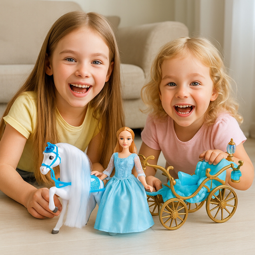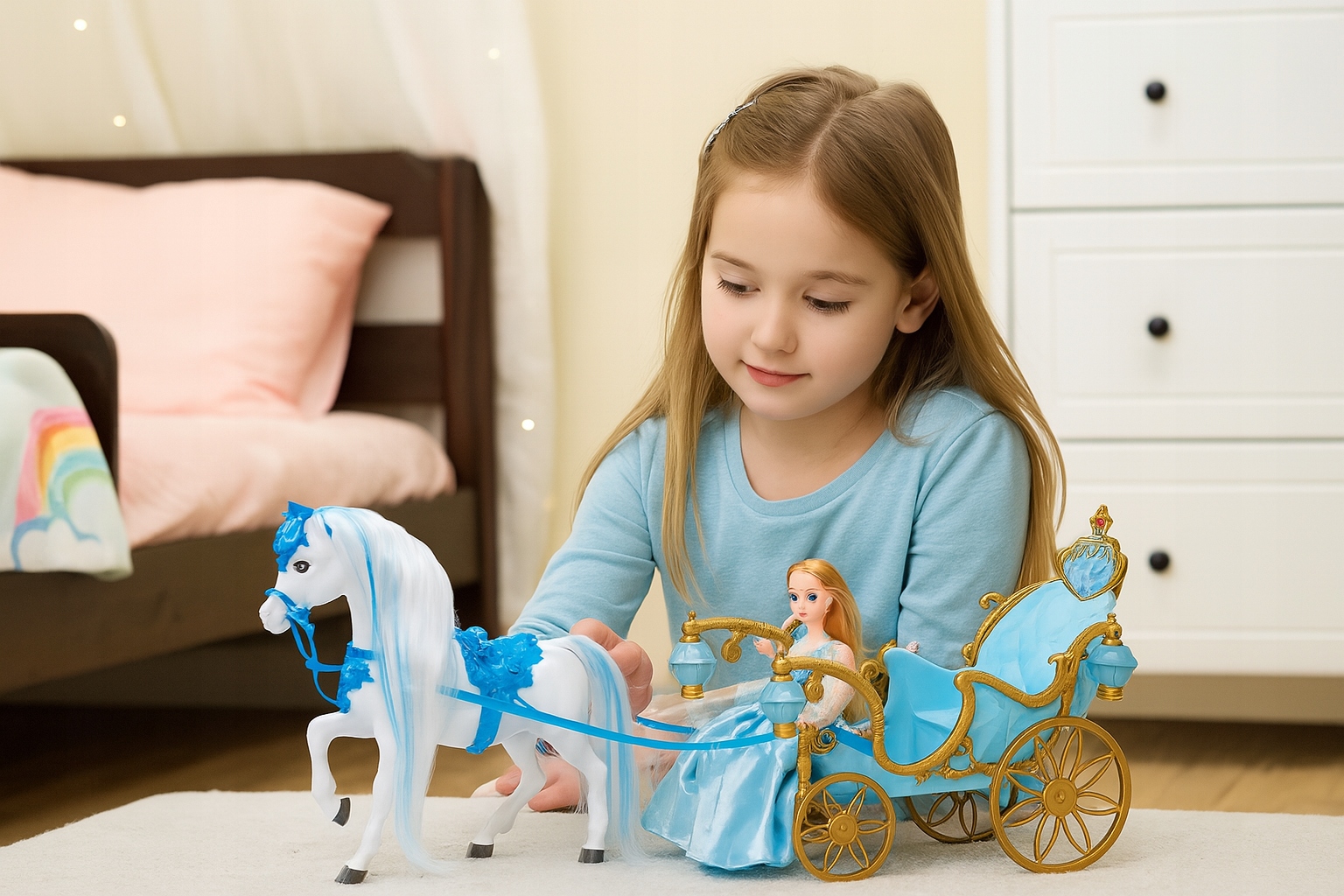 Ten niezwykły zestaw z karocą, koniem i lalką to doskonała zabawka, która rozwija wyobraźnię i gwarantuje wiele godzin twórczej zabawy.