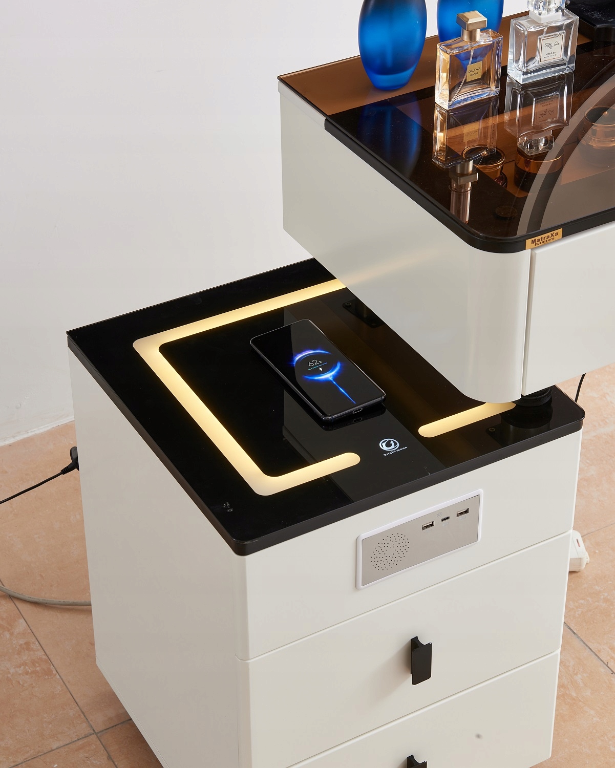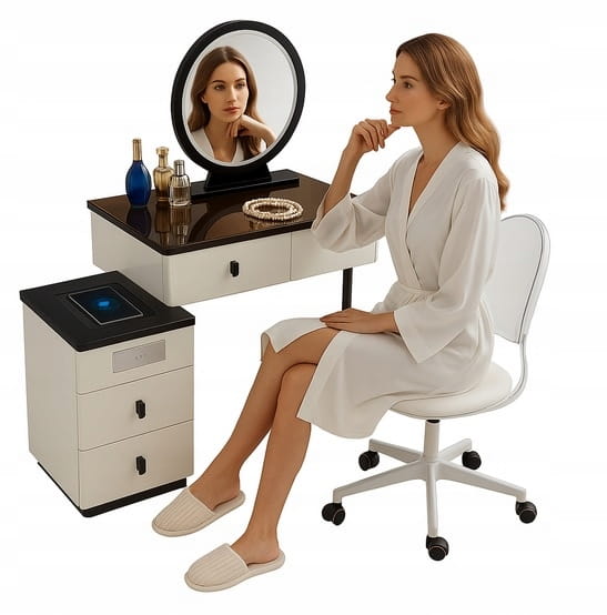 Toaletka kosmetyczna z lustrem i oświetleniem LED oraz ŁADOWANIEM INDUKCYJNYM + KRZESŁO