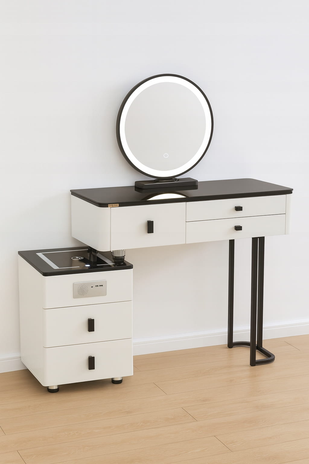 - Skorzystaj z wyjątkowych zalet naszej toaletki. Zestaw zawiera lustro LED i eleganckie krzesło - wraz z nowoczesnym wzornictwem i dużą przestrzenią do przechowywania kosmetyków do makijażu.