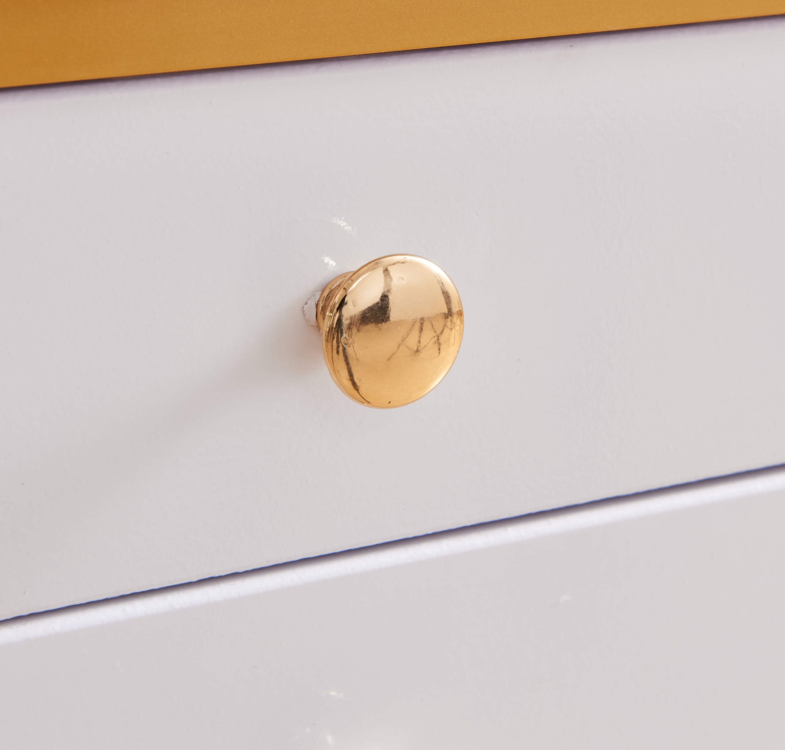 Mebel wykonany jest w eleganckim kolorze, dzięki czemu doskonale wpasuje się w nowoczesne i klasyczne wnętrza. Pojemne szuflady umożliwiają wygodne przechowywanie kosmetyków, akcesoriów i biżuterii, zachowując porządek w przestrzeni.