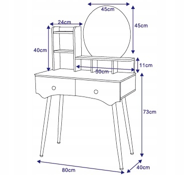 - WYMIARY PRODUKTU: Stolik do makijażu ma wymiary 80cm x 75 x 40 cm (szer. x wys. x gl.). Calkowita wysokość toaletki wynosi ok 135 cm