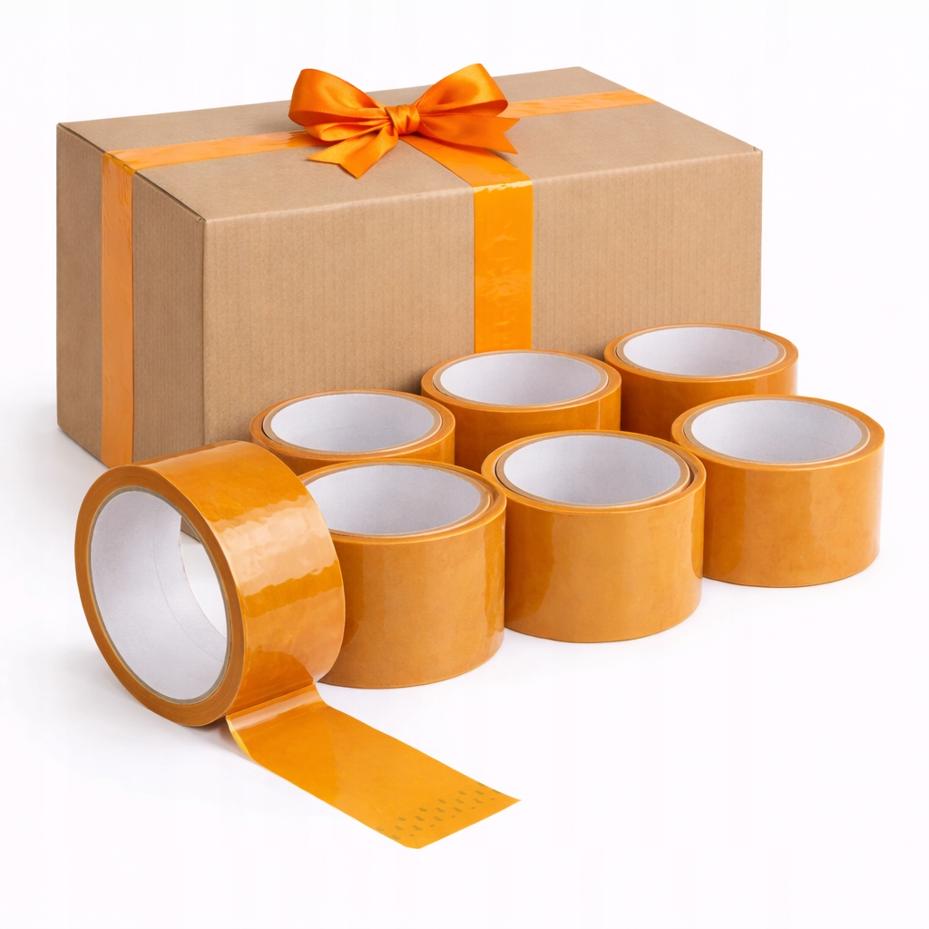Taśma pakowa do pakowania 200m klejąca Orange 218y 48mm Mocna i Długa 6 szt.