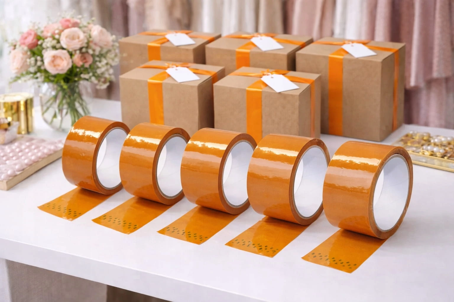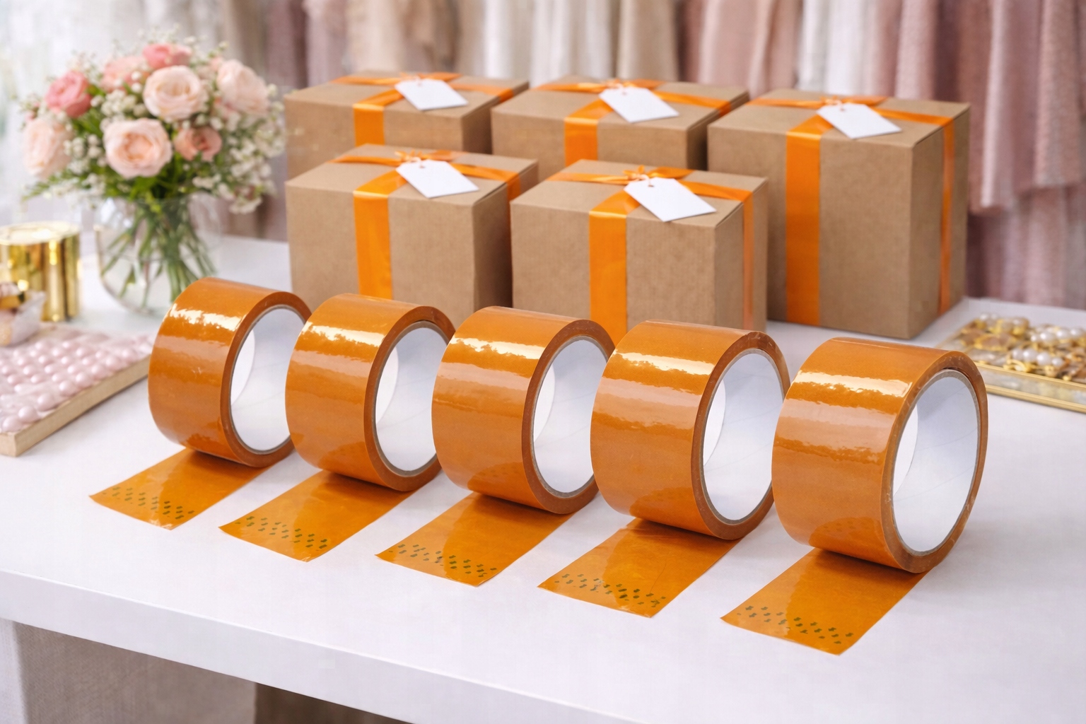 Nasza pomarańczowa taśma pakowa to idealne rozwiązanie łączące wysoką siłę klejenia z intensywnym kolorem, który wyróżni Twoją paczkę!