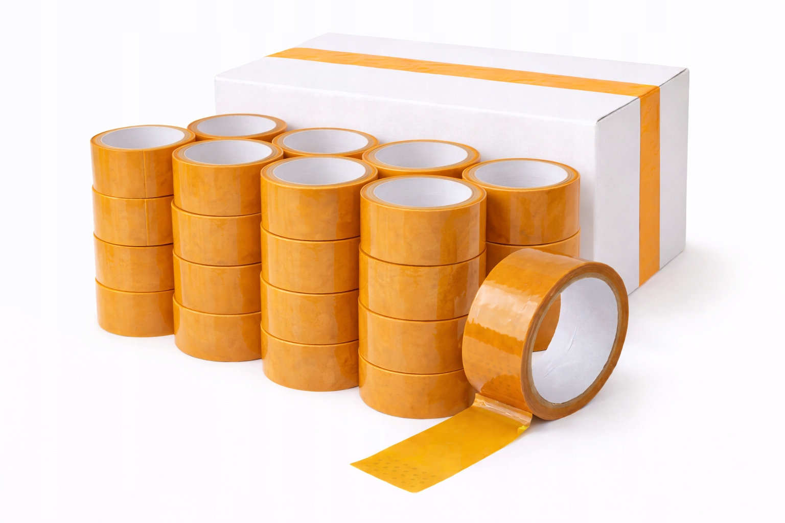 Nasza pomarańczowa taśma pakowa to idealne rozwiązanie łączące wysoką siłę klejenia z intensywnym kolorem, który wyróżni Twoją paczkę!