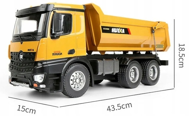 - Wymiary ciężarówki: ok. 43.5 x 18.5 x 15 cm