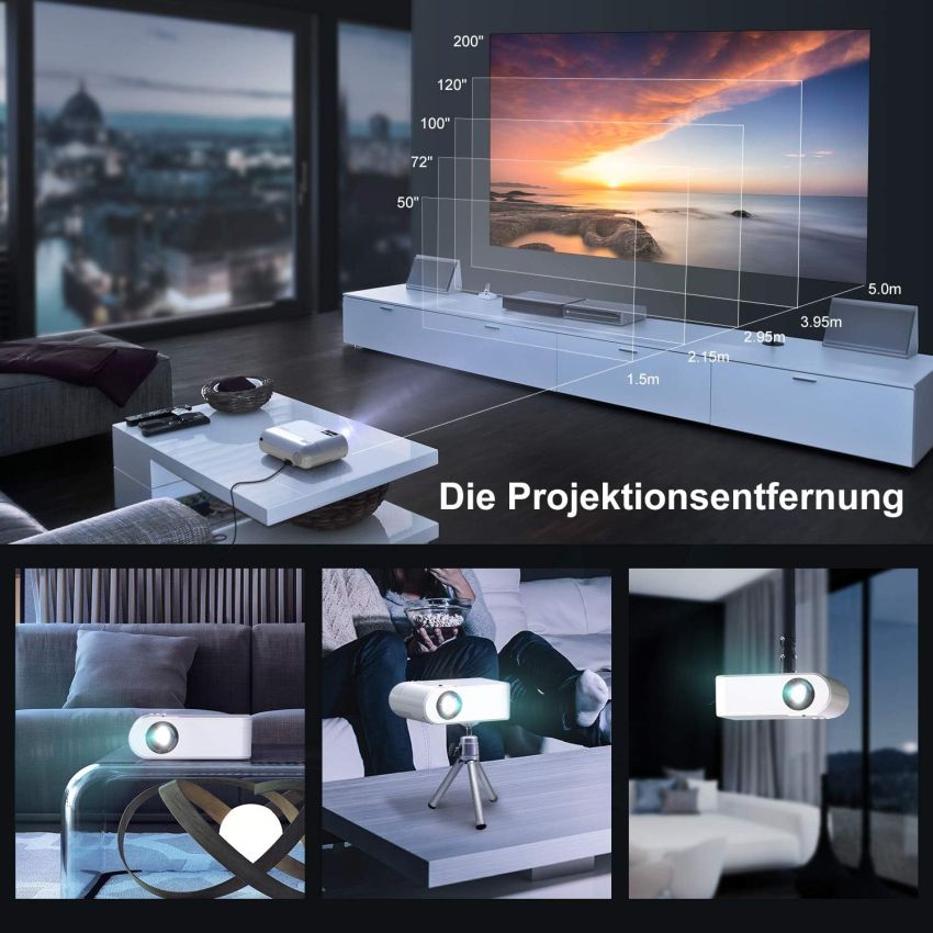 Mini projektor V2 zapewnia doskonałą jasność 6000 lumenów, wysoki współczynnik kontrastu 5000: 1 i proporcje obrazu 16: 9/4: 3. Zaawansowana technologia ulepszania kolorów może poprawić kontrast między jasnymi i ciemnymi fragmentami obrazu, poprzez wyświetlanie większej ilości szczegółów, bardziej realistycznych i bardziej naturalnych kolorów oraz zapewnia wyjątkowe wrażenia podczas oglądania filmów.
