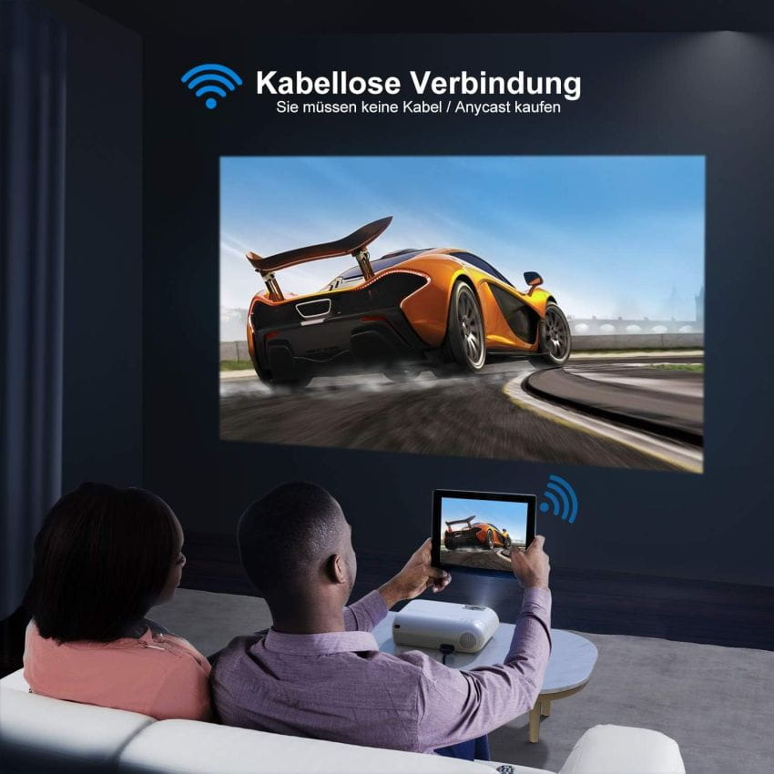 Projektor V2 obsługuje bezprzewodowe i bezprzewodowe projekcje dla systemów iOS i Android. Możesz wyświetlać na ekranie bezpośrednio ze smartfonów lub tabletów, aby o wiele łatwiej cieszyć się filmami lub meczami piłki nożnej! (Ze względu na ograniczenia praw autorskich HDCP projektor można podłączyć do Chromecast / TV Stick w celu zaprogramowania Netflix, Amazon Prime Video i Hulu itd. odtwarzania.)