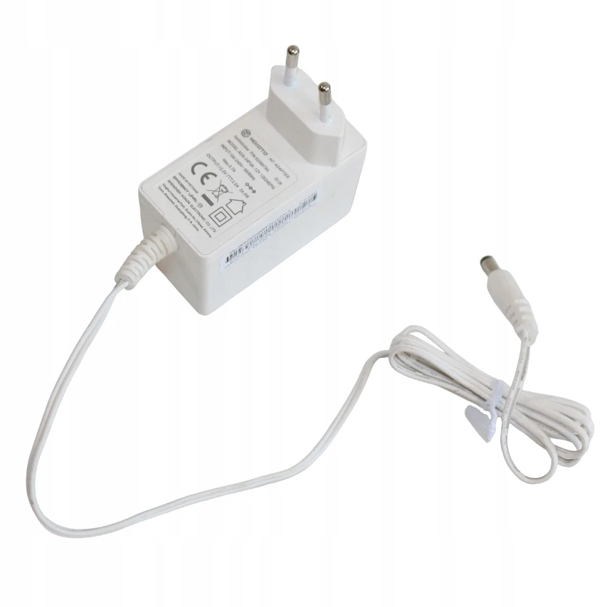 ▶️ Napięcie: 12V | Prąd: 2A | Moc: 24W | Wtyczka: 5.5 mm x 2.1 mm | Długość kabla: 120 cm