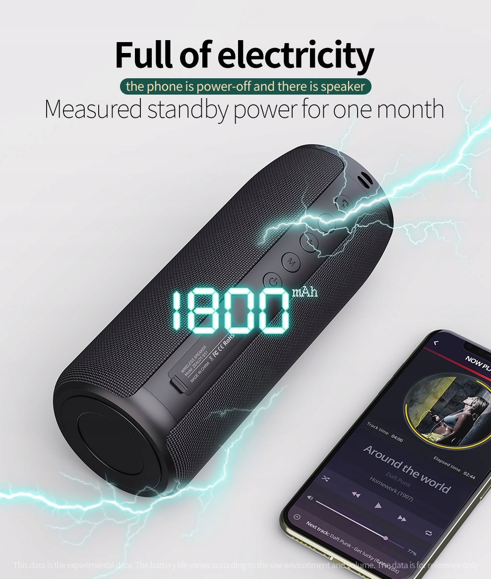 Dźwięk radia z pełnym basem --- głośniki z bluetooth zapewniają wciągający dźwięk z bogatym basem, średnimi i wysokimi tonami, dynamicznym dźwiękiem. Nawet przy maksymalnej głośności, bez łamania dźwięku, w taki sam sposób, jak koncert na żywo.