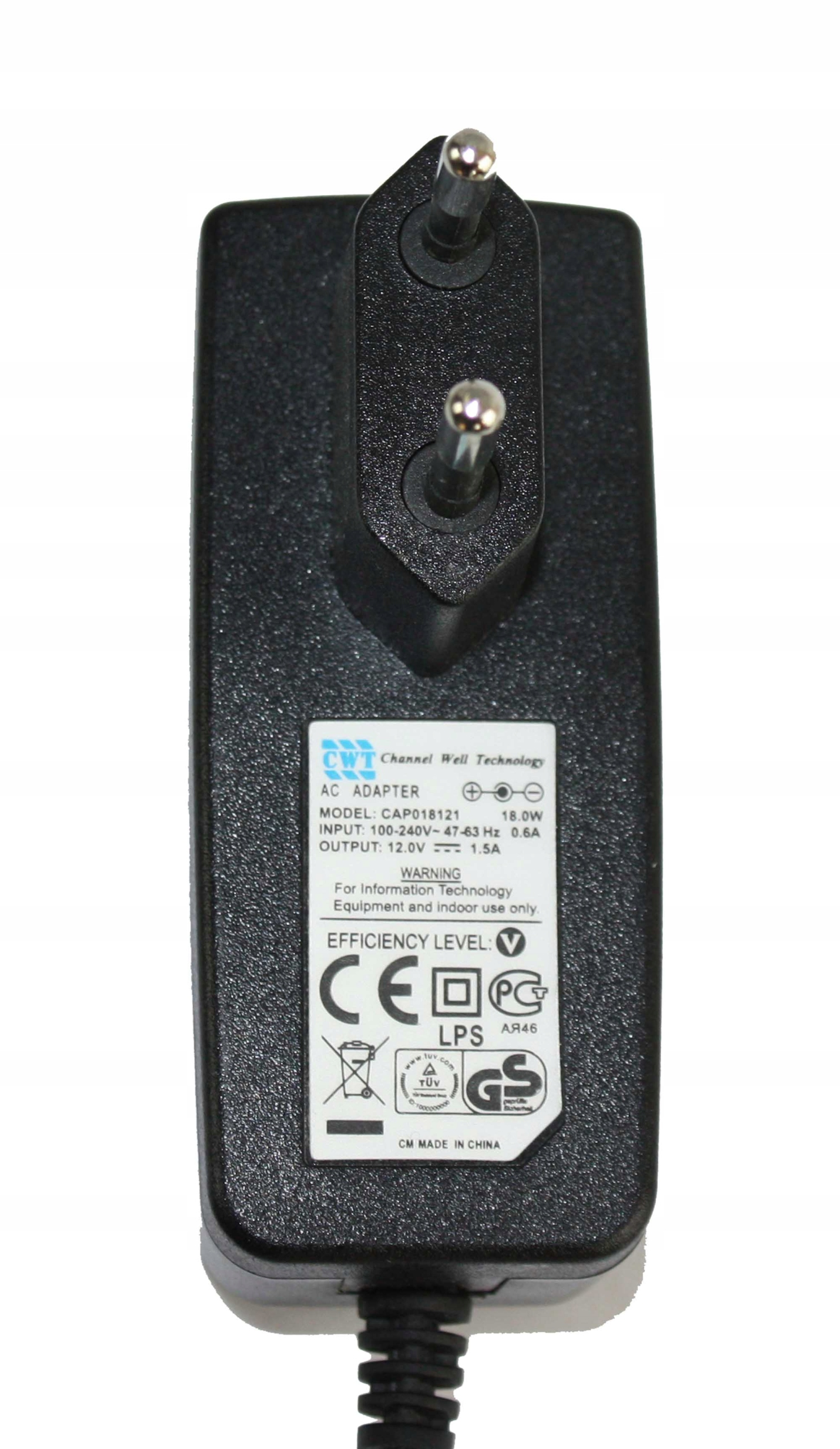 Zasilacz Ładowarka 12V 1.5A DC 5.5/2.5 18W CWT CAP018121