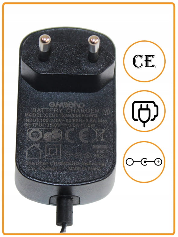 Zasilacz Ładowarka do odkurzacza DC 35V 0.5A 17.5W | Wtyk 5.5/2.1mm | CZH015350050EUWQ