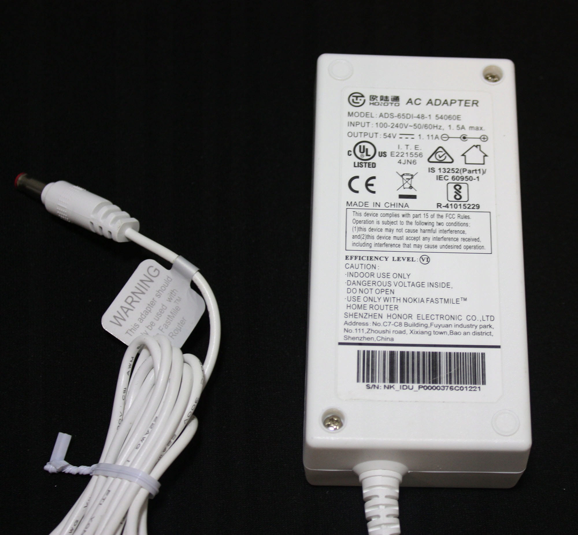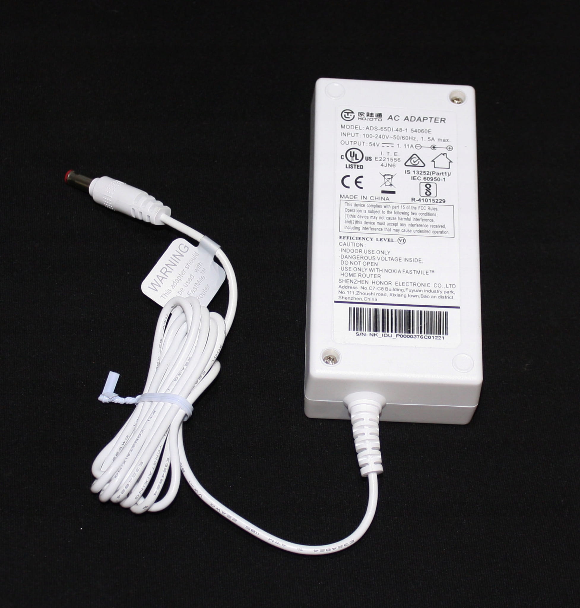 Zasilacz do urządzeń sieciowych 54V 1.11A 60W HOIOTO ADS-65DI-48-1 pin POE