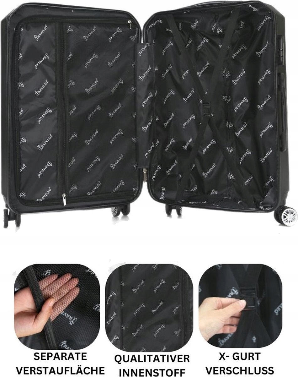 Zestaw 3 walizek pdróżnych na kółkach Traveleo CF-ABS08GOL