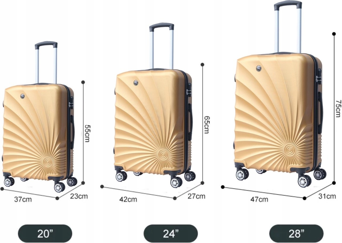 Zestaw 3 walizek podróżnych na kółkach Traveleo CF-ABS08GOL złote
